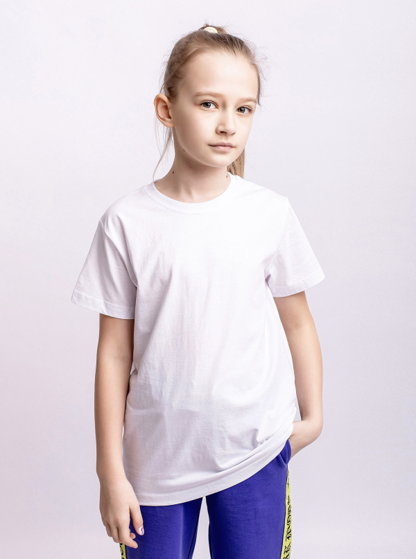 Футболка однотонная белая для детей и подростков с коротким рукавом.
