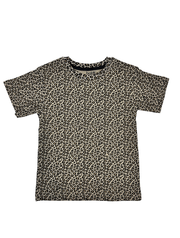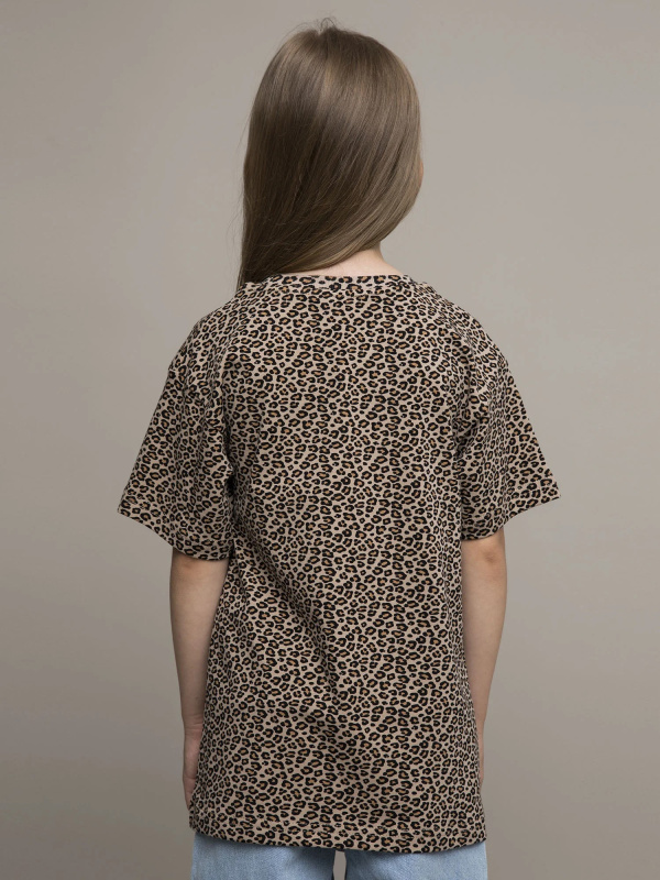 Детская футболка с коротким рукавом с леопардовым принтом для девочек. Стильная и оригинальная футболка, выполненная из премиального супрема. Модный принт придает образу оригинальности и яркости. Удобная округлая горловина и свободный крой для комфорта в движении. Натуральный хлопок обеспечивает воздухообмен и комфорт при носке.