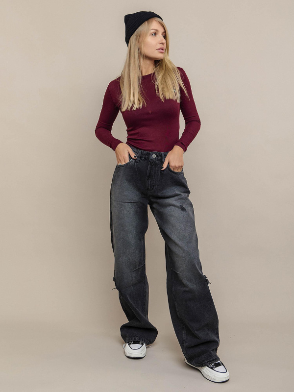 Широкие джинсы-бананы из качественного, хлопкового денима, который не линяет и не теряет форму после стирки. - свободные в бедрах и зауженные книзу - подчеркивают фигуру и скрывают недостатки засчет высокой посадки по талии, защипов спереди и вытачек сзади -застежка на молнию и пуговицу спереди, шлевки для ремня -два боковых карман и два накладных карман сзади. Эти джинсы с классическим вареным эффектом подойдут для расслабленных повседневных и уличных луков, которые никогда не выйдут из моды и станут идеальной основой твоего гардероба на каждый день.