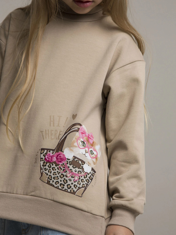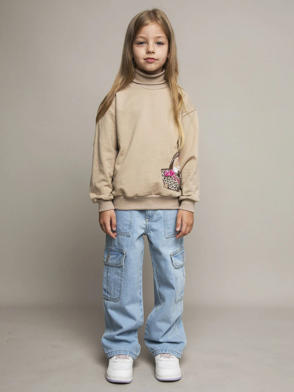 Детская водолазка-джемпер в нежном бежевом цвете. Уютная и стильная водолазка для девочки, выполненная из мягкого футера с начесом.Теплый бежевый оттенок создает нежный образ, а высокий воротник-стойка обеспечивает дополнительное тепло и защиту от ветра.