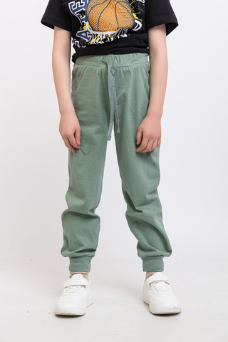 Стильные и практичные брюки для мальчика в спортивном дизайне. Удобный крой – свободный силуэт не сковывает движения. Практичный хаки цвет сочетается с любой одеждой. Регулируемый пояс на резинке со шнурком. Практичные манжеты – низ штанин на резинке для удобства. Подходит для школы, прогулок и активных игр.