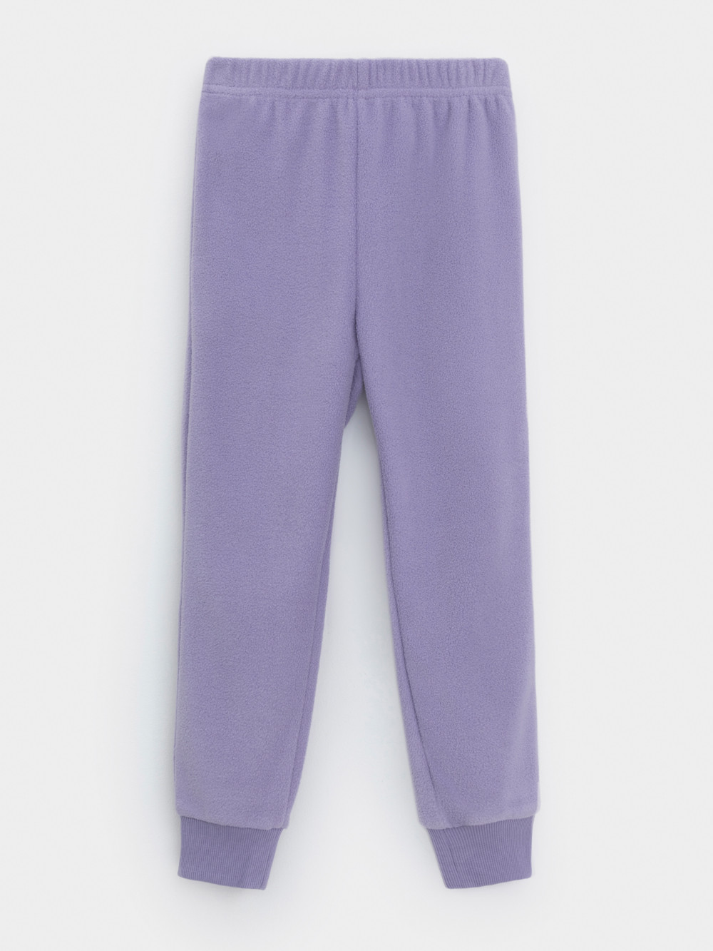 Однотонные детские брюки из флиса с поясом на резинке. Низ изделия на манжетах из эластичного трикотажа в рубчик. Брюки сохраняют цвет и форму после многократных стирок.