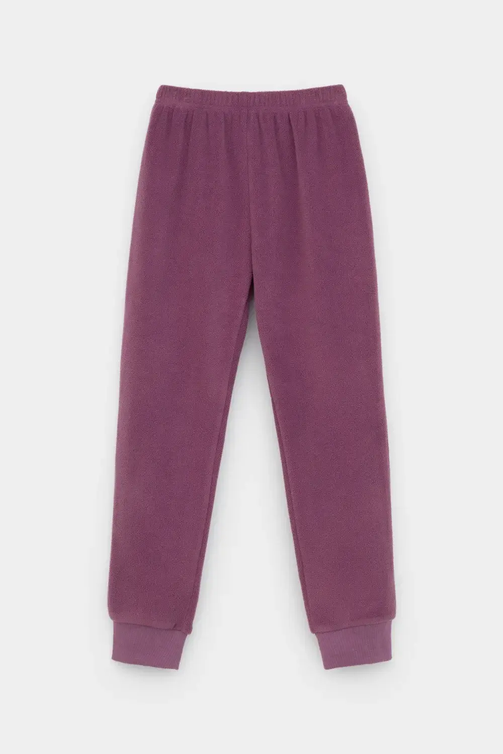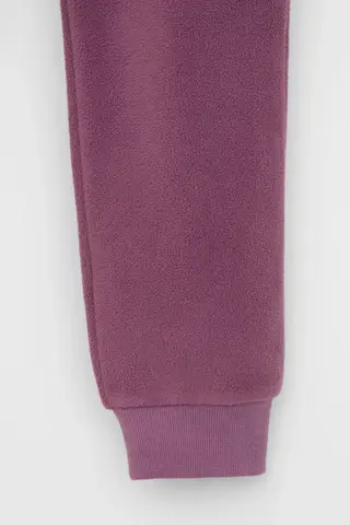 Однотонные детские брюки из флиса с поясом на резинке. Низ изделия на манжетах из эластичного трикотажа в рубчик. Брюки сохраняют цвет и форму после многократных стирок.