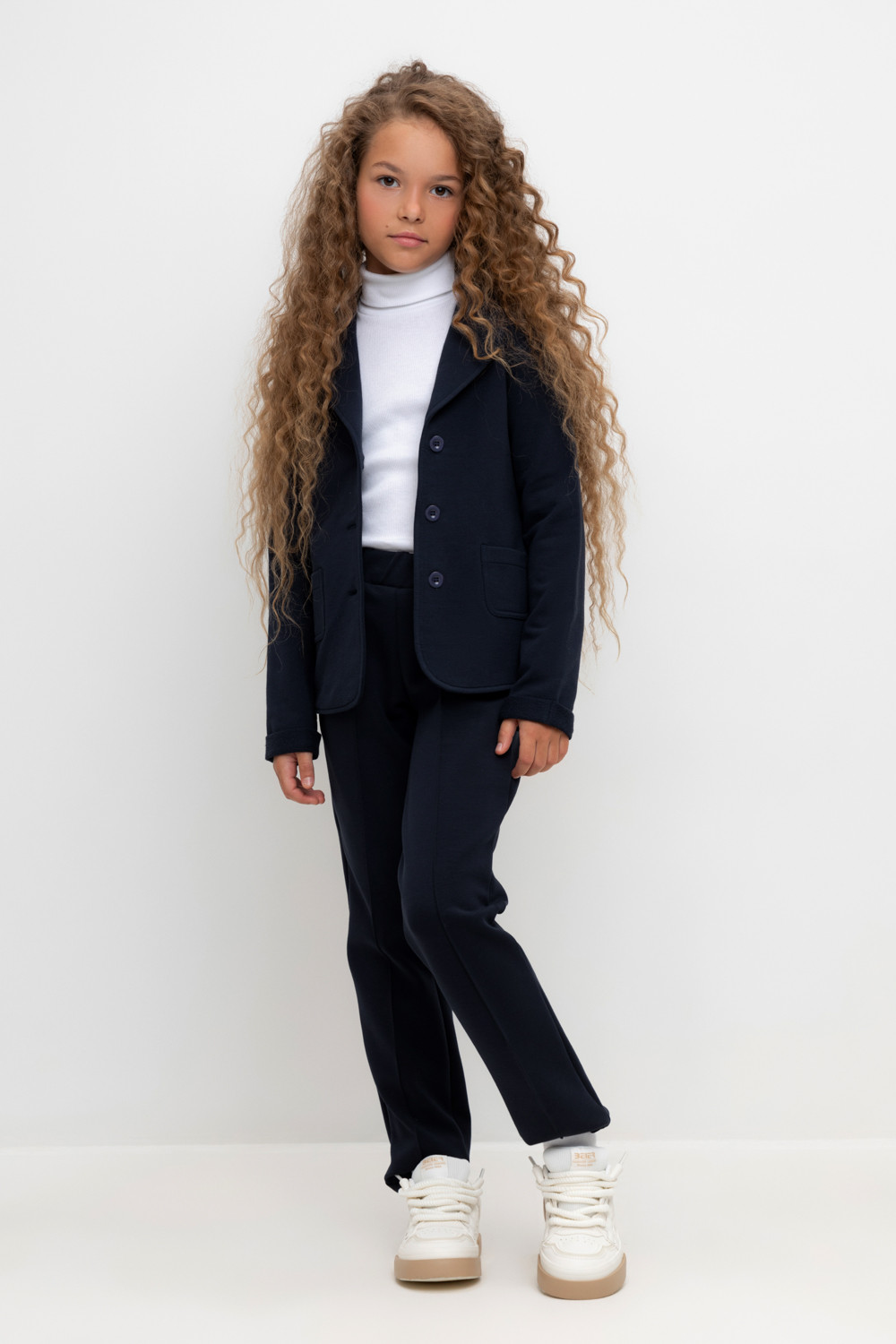 Брюки школьные для девочки прямого кроя с боковыми карманами из плотного трикотажа интерлок. Пояс на резинке позволяет регулировать посадку. Идеальный и комфортный вариант на каждый день.