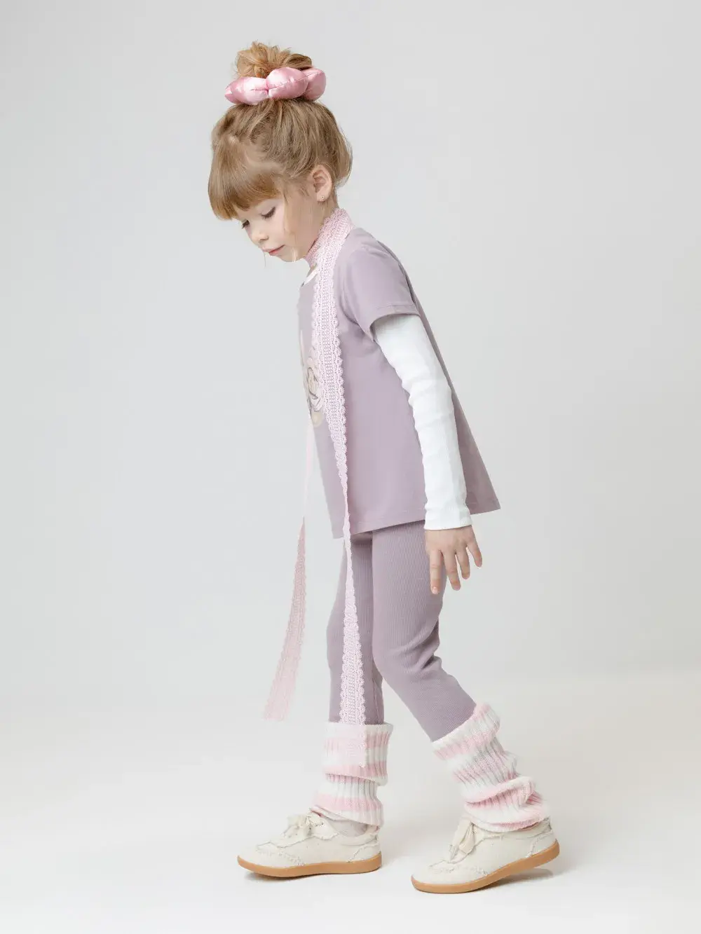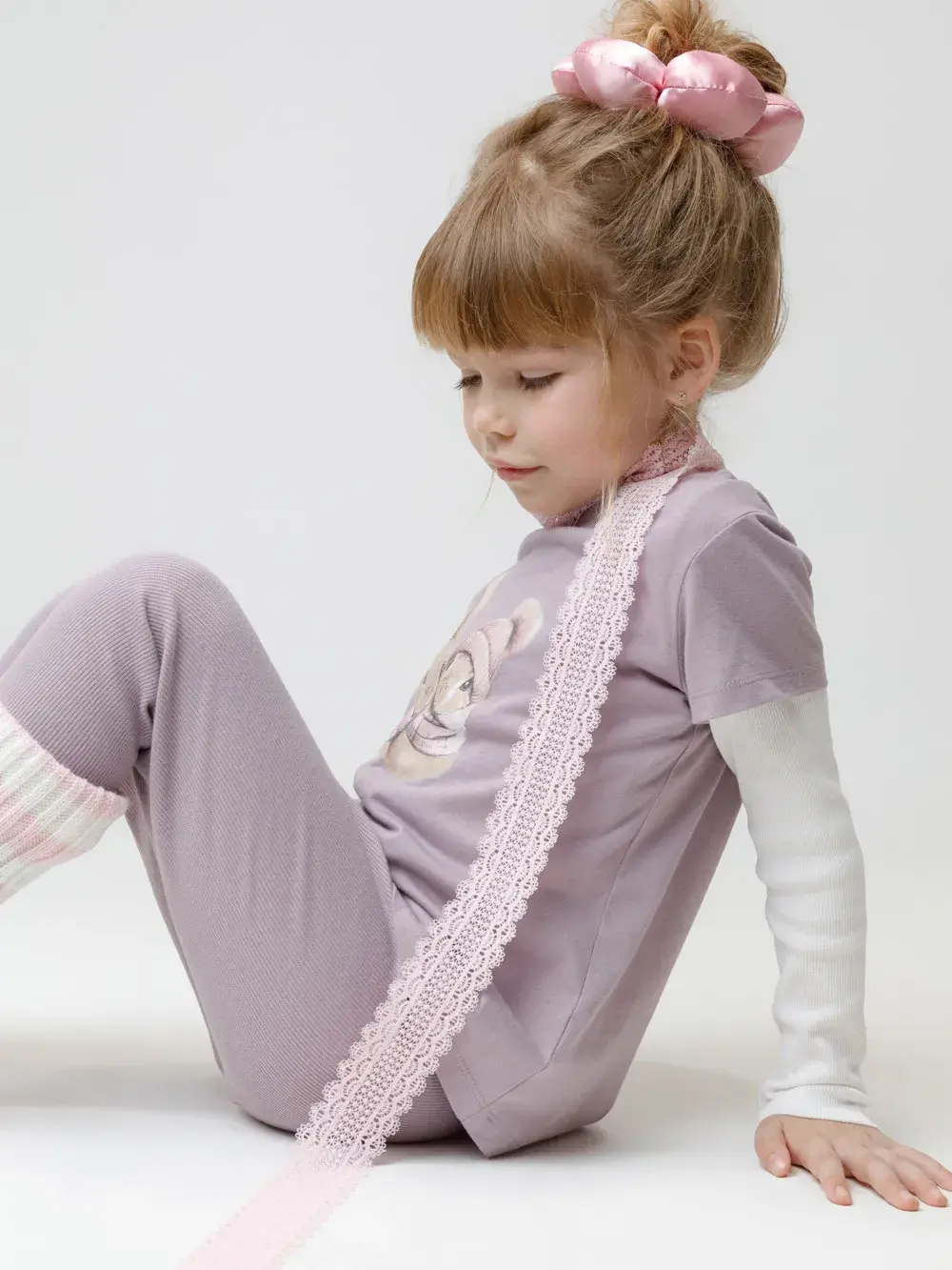 Трикотажные лосины для девочки из эластичного полотна в рубчик. Изделие сохраняет цвет и форму после многократных стирок. Все трикотажные полотна производятся в соответствии с нормами швейцарского сертификата ЭкоТекс.