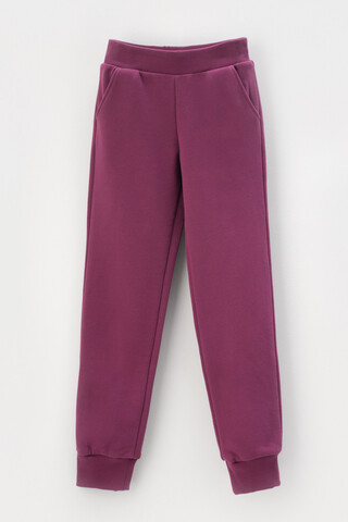 Трикотажные брюки для девочки из футера с начёсом. В составе 80% натурального хлопка и 20% полиэстера, при этом полиэстер ввязан внутрь по особой технологии и не соприкасается с кожей. Эластичный пояс на резинке, по бокам два удобных кармана, внизу эластичные манжеты.