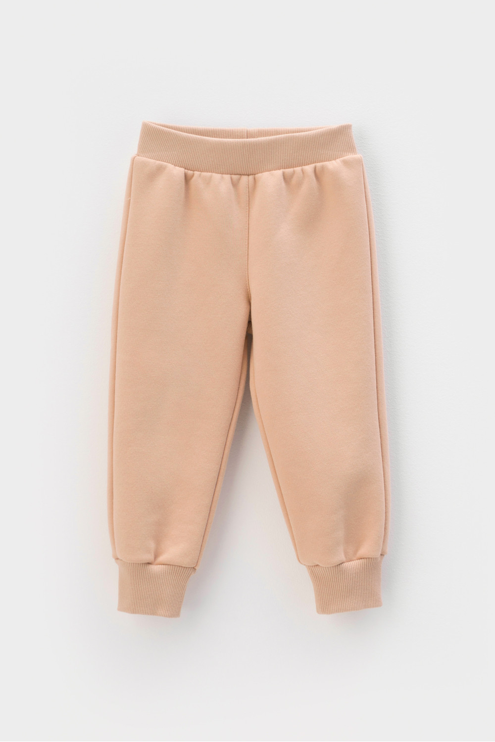 Трикотажные брюки для девочки из футера с начесом. В составе 80% натурального хлопка и 20% полиэстера, при этом полиэстер ввязан внутрь по особой технологии и не соприкасается с кожей. Эластичный пояс на резинке, внизу эластичные манжеты.