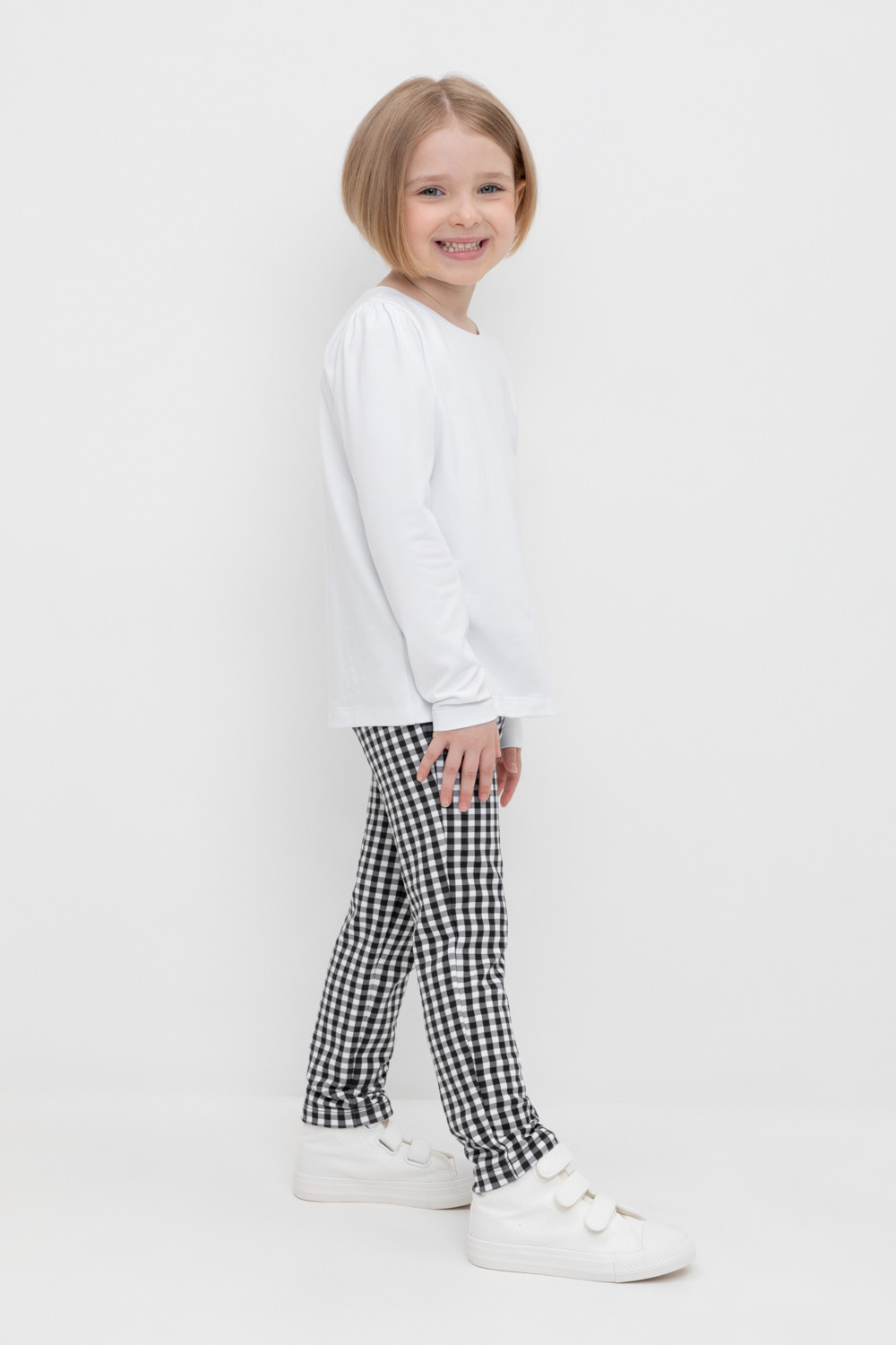 брюки для девочки КР 400622/серая клетка на белом к519