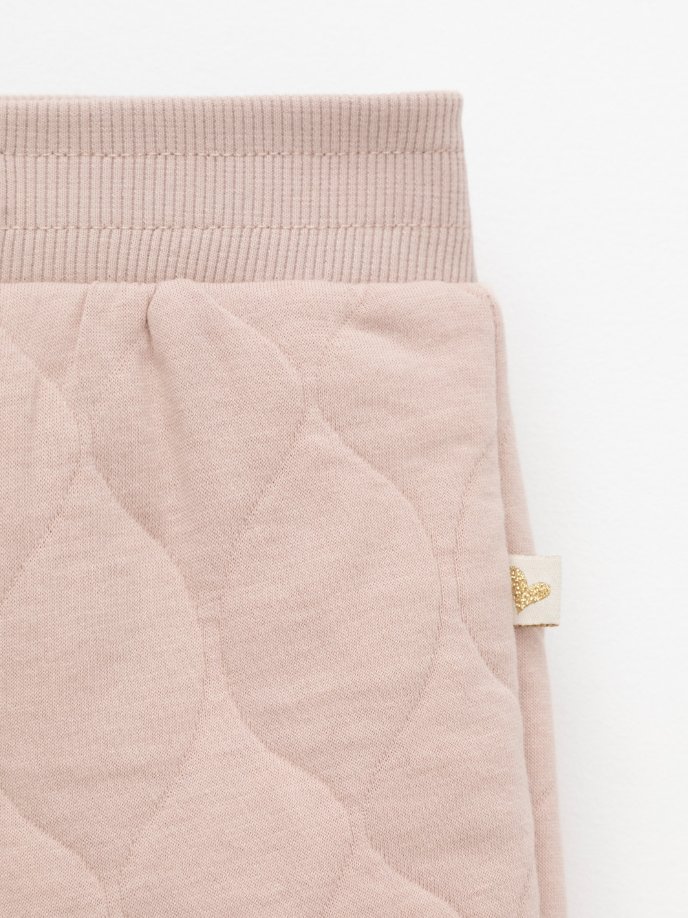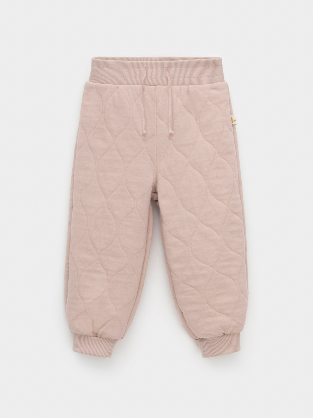 Тёплые брюки для девочки из мягкого капитония. Капитоний – это стёганое трикотажное полотно с утеплителем из полиэстеровой нити. Модель с эластичным поясом на резинке регулируется по ширине при помощи шнурка. Все трикотажные полотна производятся в соответствии с нормами швейцарского сертификата ЭкоТекс.