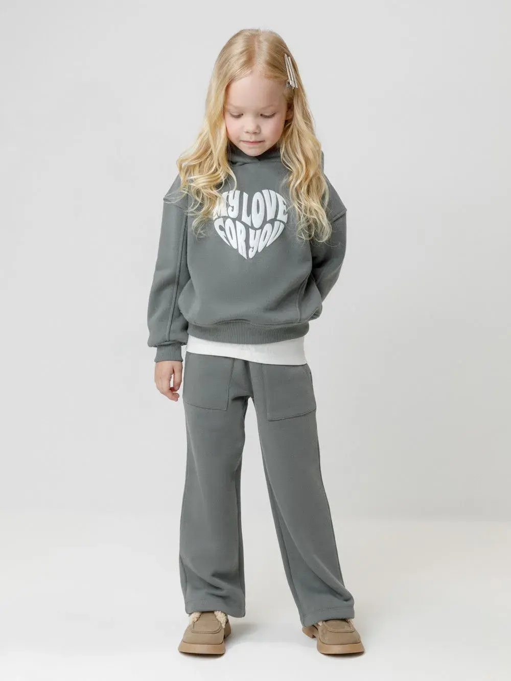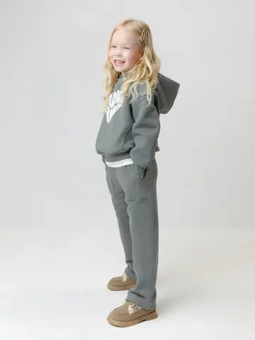 Тёплые брюки для девочки из мягкого трикотажа с начёсом. Эластичный пояс на резинке регулируется по ширине с помощью шнурка. По бокам два удобных накладных кармана. Изделие сохраняет цвет и форму после многократных стирок. Все трикотажные полотна производятся в соответствии с нормами швейцарского сертификата ЭкоТекс.
