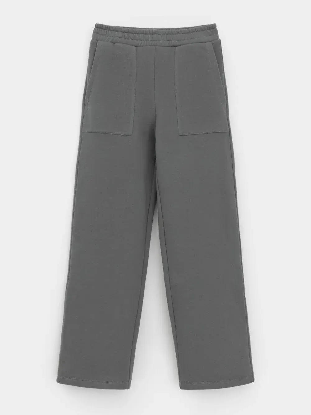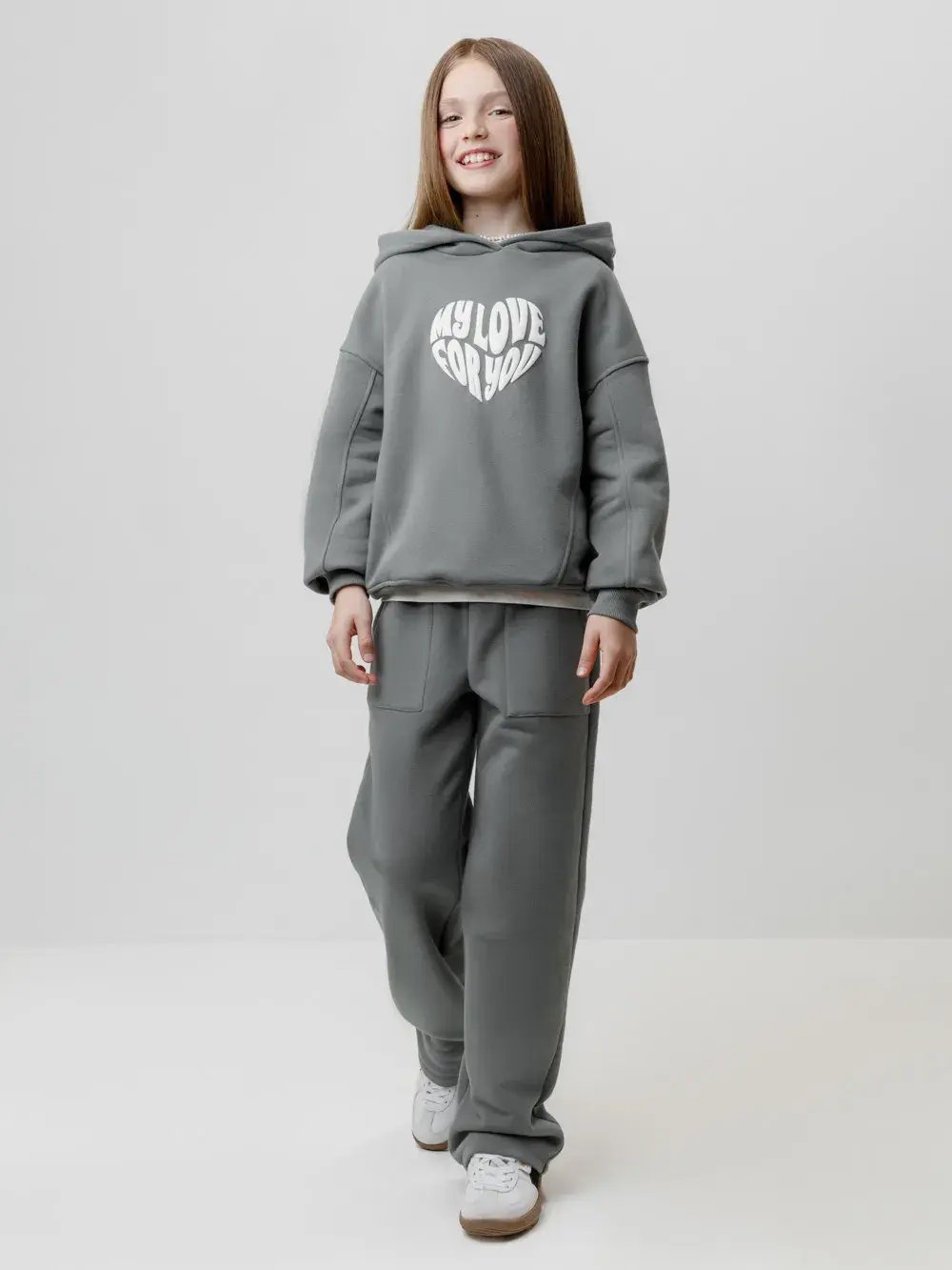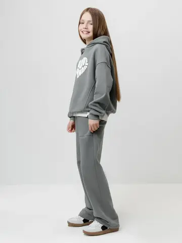 Тёплые брюки для девочки из мягкого трикотажа с начёсом. Эластичный пояс на резинке регулируется по ширине с помощью шнурка. По бокам два удобных накладных кармана. Изделие сохраняет цвет и форму после многократных стирок. Все трикотажные полотна производятся в соответствии с нормами швейцарского сертификата ЭкоТекс.