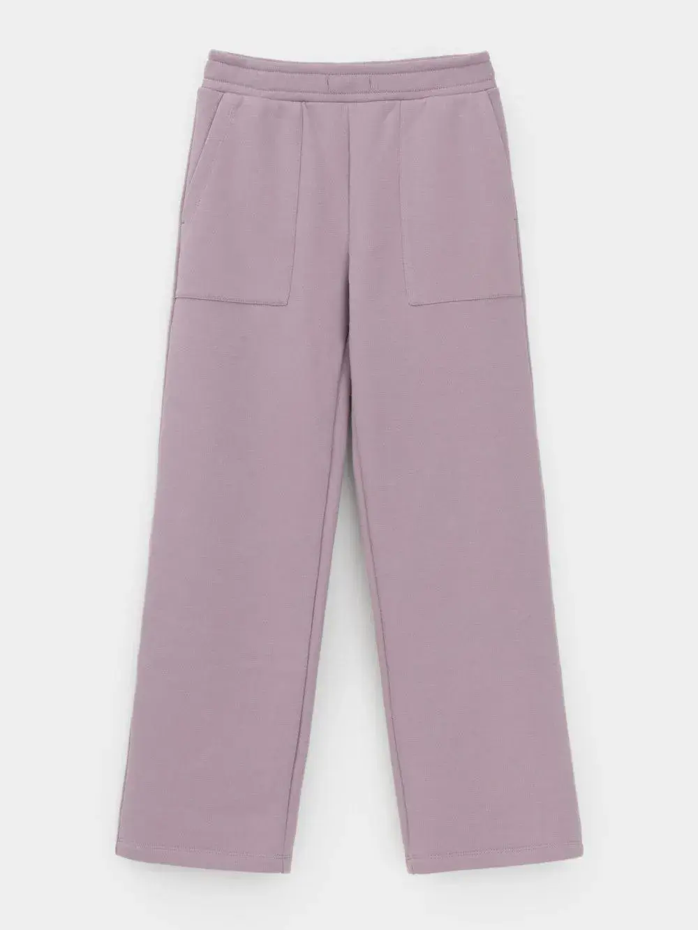 Прямые брюки для девочки из мягкого трикотажа с начёсом. Эластичный пояс на резинке регулируется по ширине с помощью шнурка. По бокам два удобных накладных кармана. Изделие сохраняет цвет и форму после многократных стирок. Все трикотажные полотна производятся в соответствии с нормами швейцарского сертификата ЭкоТекс.