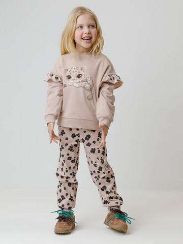 Тёплые брюки для девочки из высококачественного футера с начёсом. Эластичный пояс на резинке регулируется по ширине при помощи шнурка. Оригинальный рисунок выполнен из стойких текстильных красителей. Изделие сохраняет форму и стойкий цвет после многочисленных стирок. Все трикотажные полотна производятся в соответствии с нормами швейцарского сертификата ЭкоТекс.