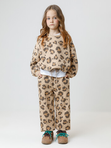 Брюки для девочки из мягкого петельчатого футера. В составе 80% натурального хлопка и 20% полиэстера, при этом полиэстер ввязан внутрь по особой технологии и не соприкасается с кожей. Модель с эластичным поясом на резинке регулируется по ширине с помощью шнурка. Спереди защипы, низ на манжетах. Два кармана по бокам. Все трикотажные полотна производятся в соответствии с нормами швейцарского сертификата ЭкоТекс.