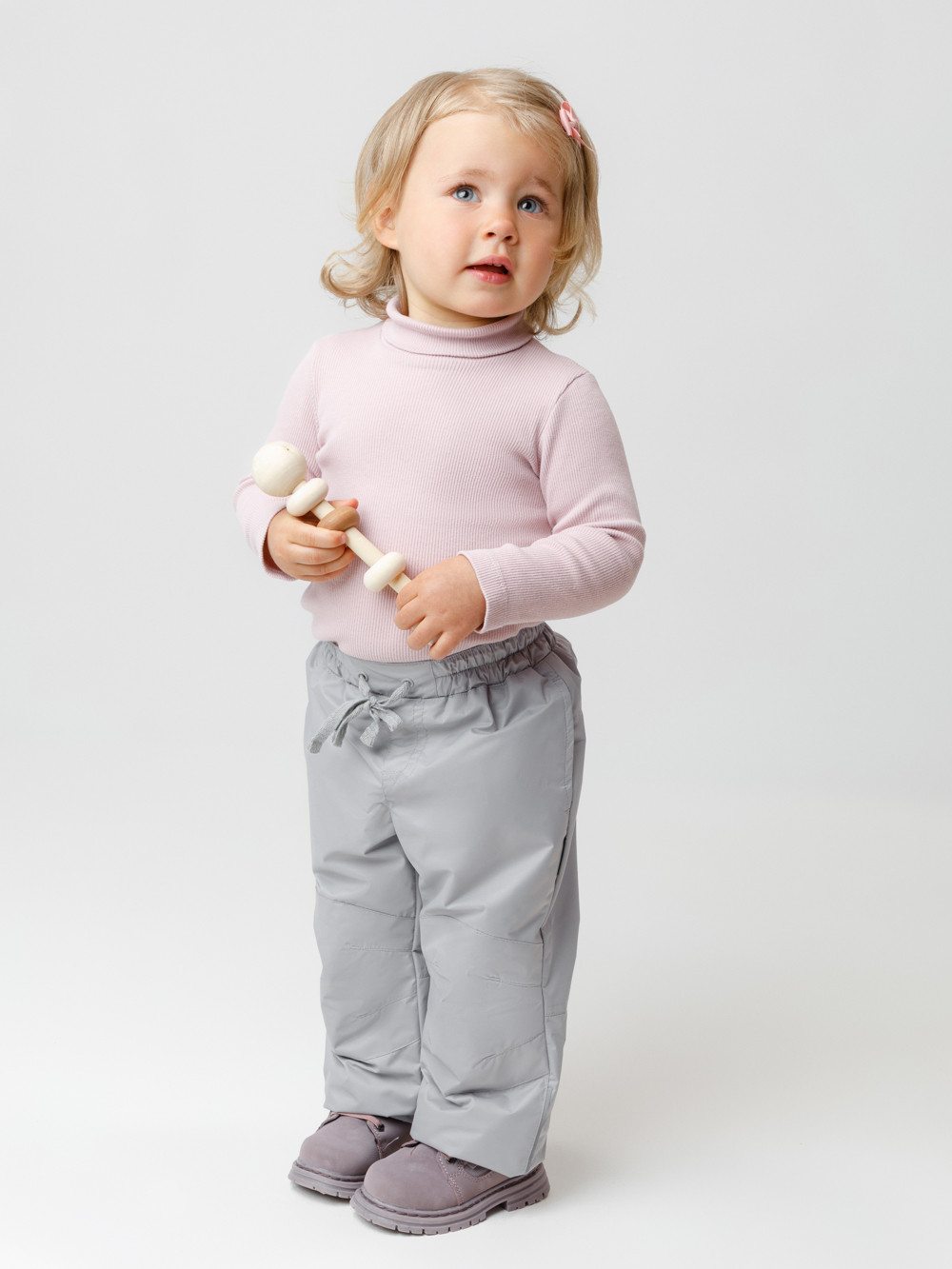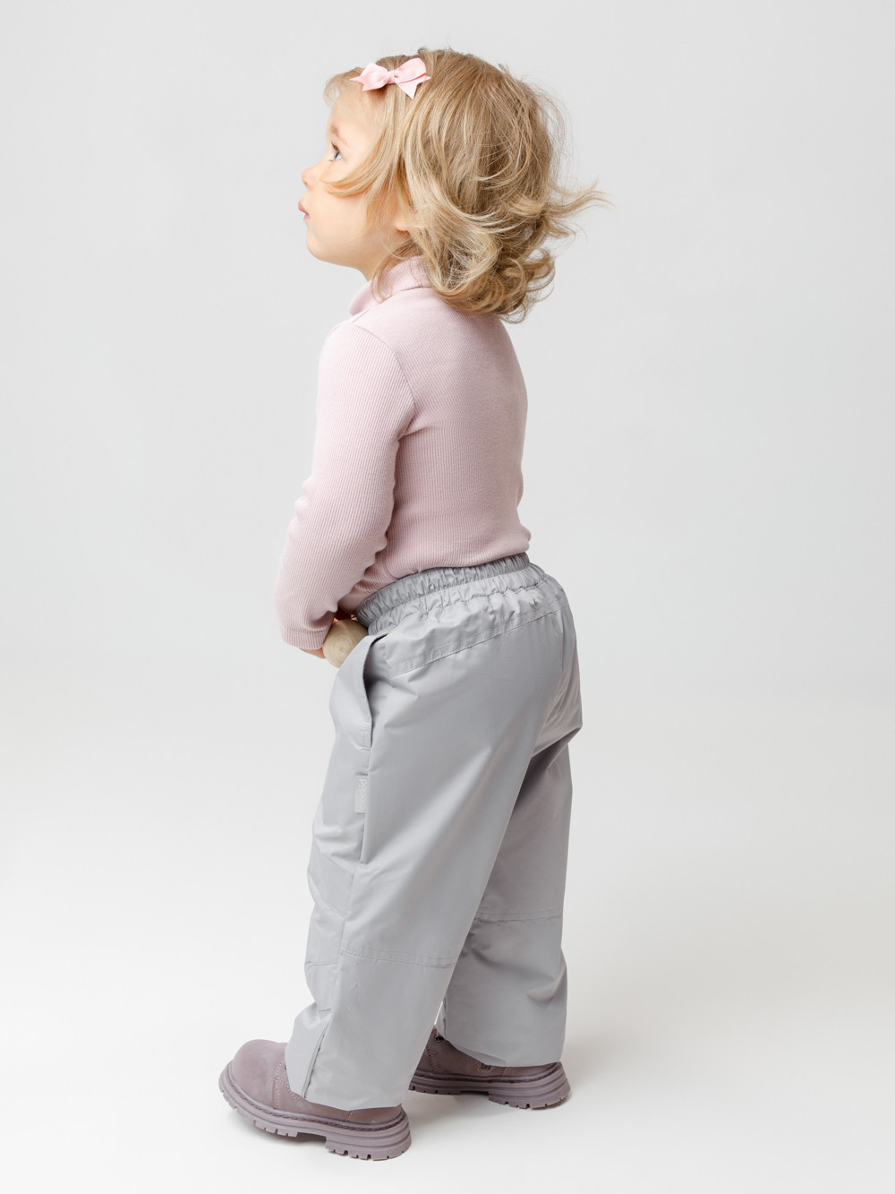Ветровочные брюки из мембранной ткани с дополнительной тефлоновой обработкой. Данный вид обработки предохраняет изделие от загрязнения и лучше отводит влагу. Подклад из 100% хлопка. Эластичный пояс утягивается при помощи шнурка. Ширина низа регулируется утяжкой со стопперами. Во всех изделиях верхнего ассортимента для безопасности ребенка предусмотрены светоотражающие элементы.
