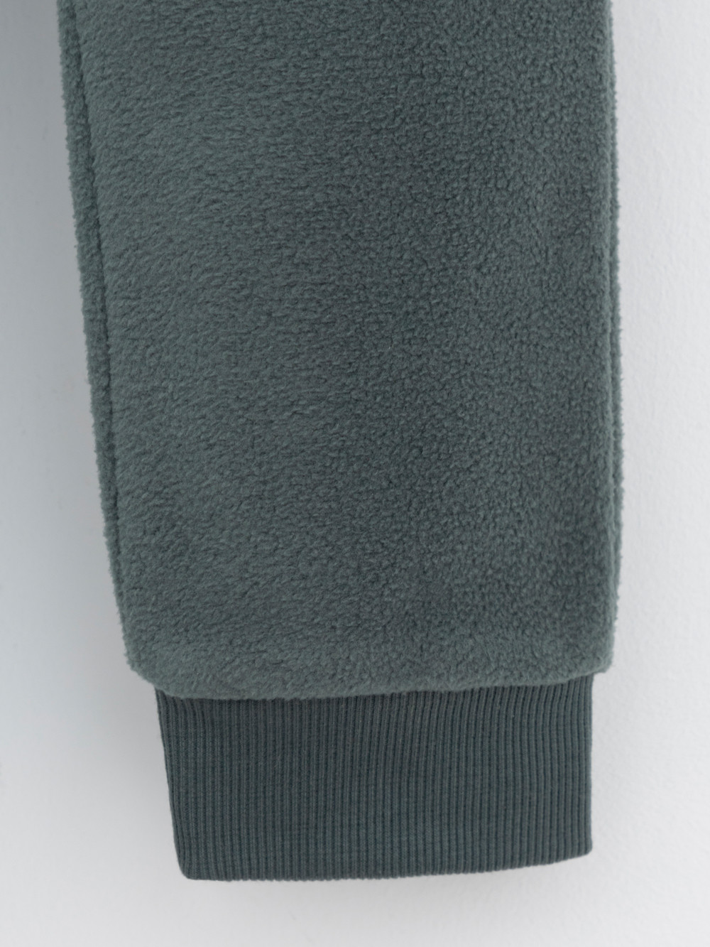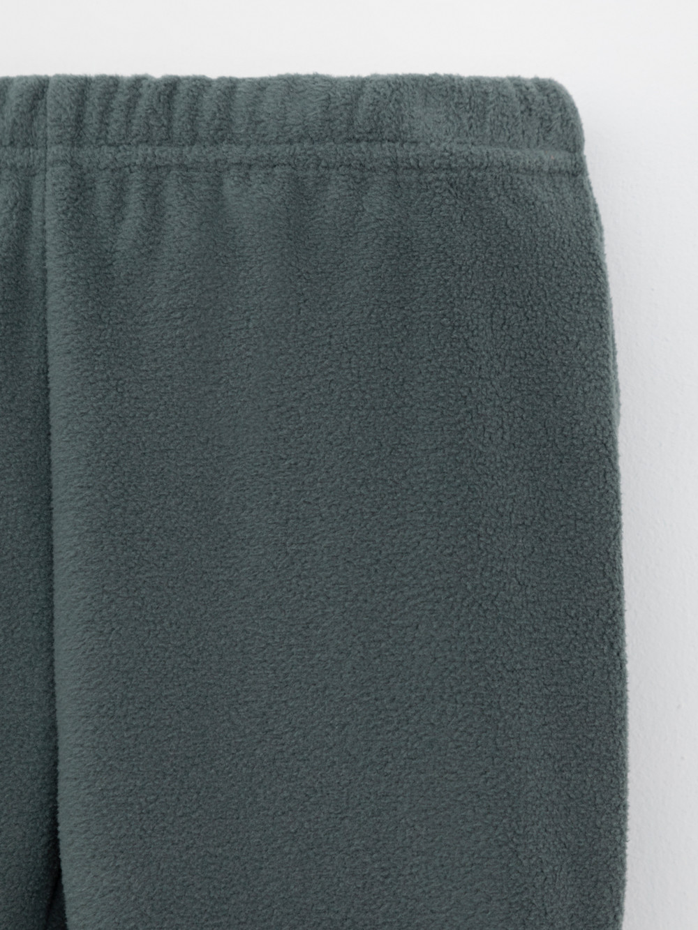 Однотонные детские брюки из флиса с поясом на резинке. Низ изделия на манжетах из эластичного трикотажа в рубчик. Брюки сохраняют цвет и форму после многократных стирок.