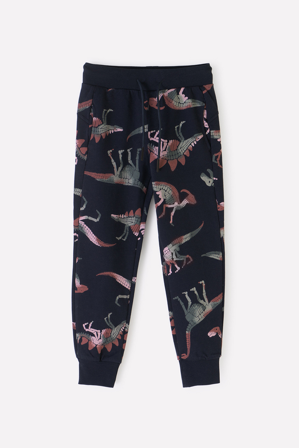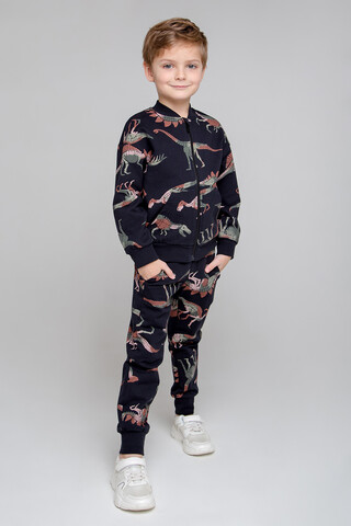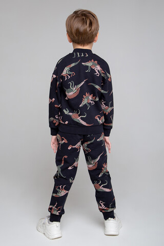Брюки для мальчика из футера с начёсом, произведённого из натурального хлопка. Эластичный пояс регулируется по ширине с помощью шнурка. У изделия эластичные манжеты и два кармана по бокам. Оригинальная набивка выполнена из стойких текстильных гипоаллергенных красителей. Брюки сохраняют цвет и форму после многократных стирок.