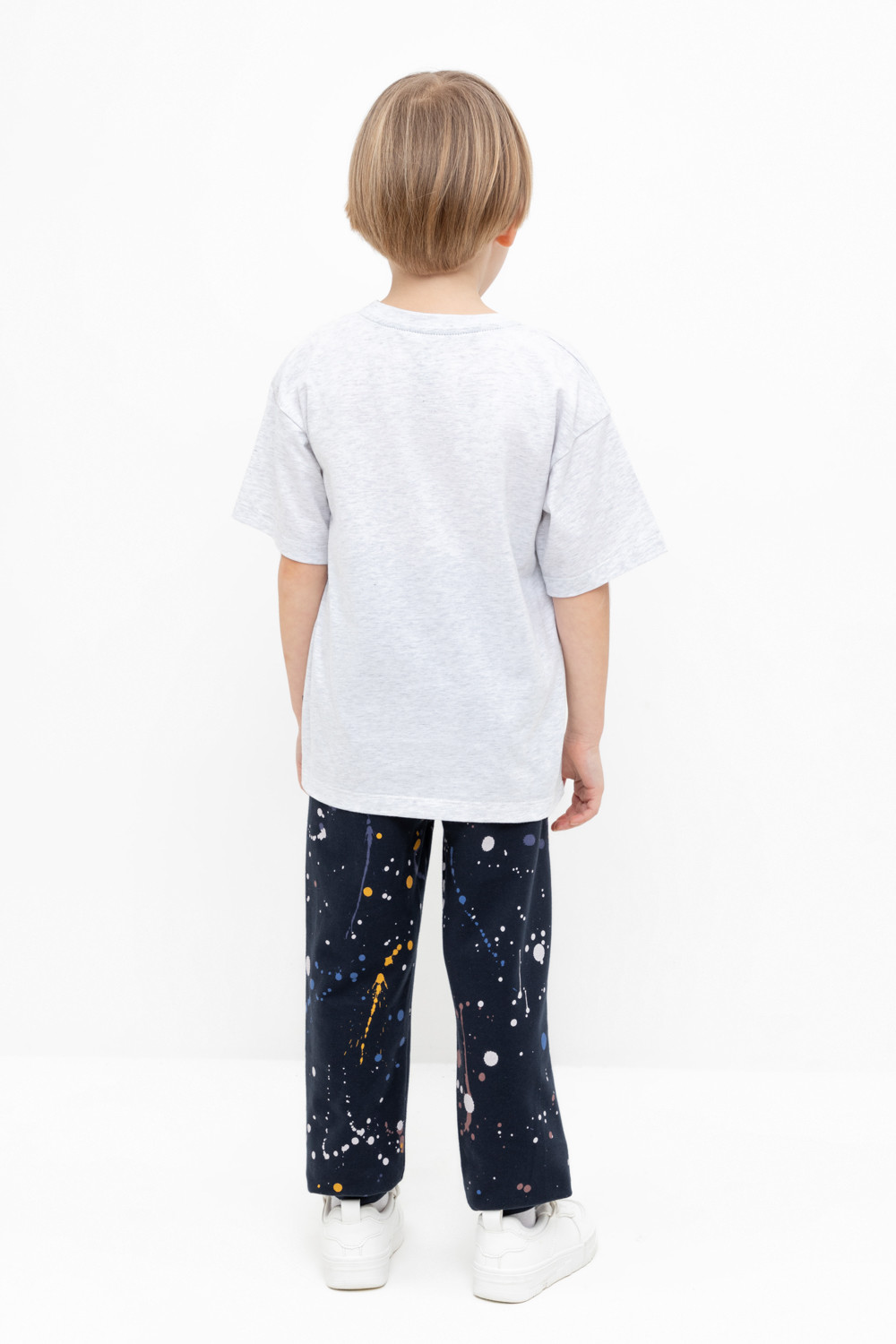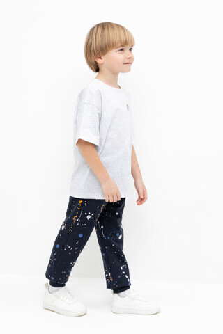 Трикотажные брюки для мальчика из петельчатого футера. Эластичный пояс на резинке регулируется по ширине с помощью шнурка, по бокам два удобных кармана, внизу эластичные манжеты.