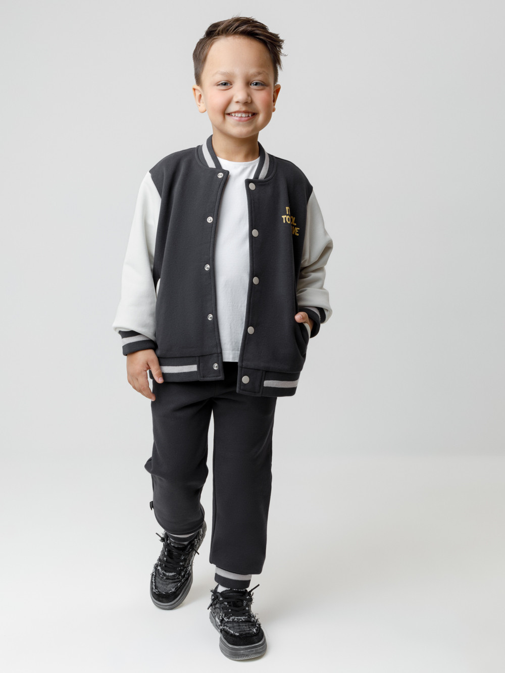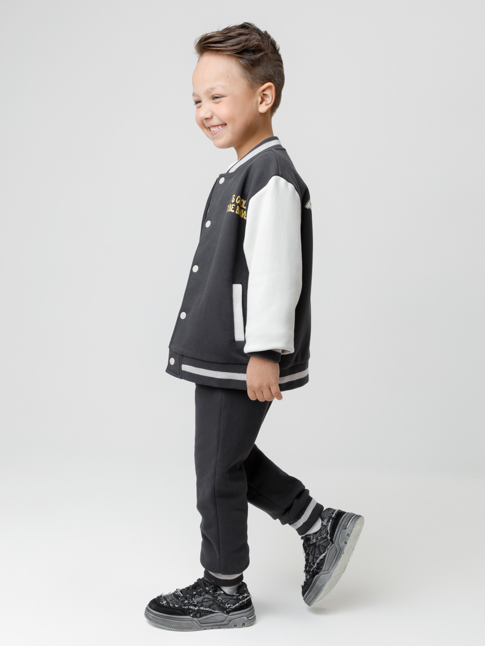 Брюки для мальчика из мягкого петельчатого футера. Модель с эластичным поясом на резинке и утягивающим шнурком для регулировки по талии. По бокам два удобных кармана. Низ на манжетах. Изделие сохраняет цвет и форму после многократных стирок. Все трикотажные полотна производятся в соответствии с нормами швейцарского сертификата ЭкоТекс.