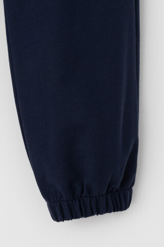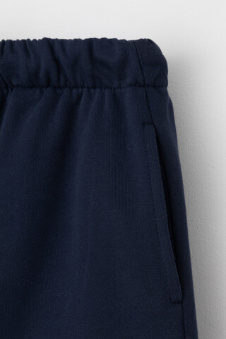 Трикотажные брюки для мальчика из петельчатого футера. Эластичный пояс на резинке регулируется по ширине с помощью шнурка. По бокам два удобных кармана. Внизу эластичные манжеты на резинке.