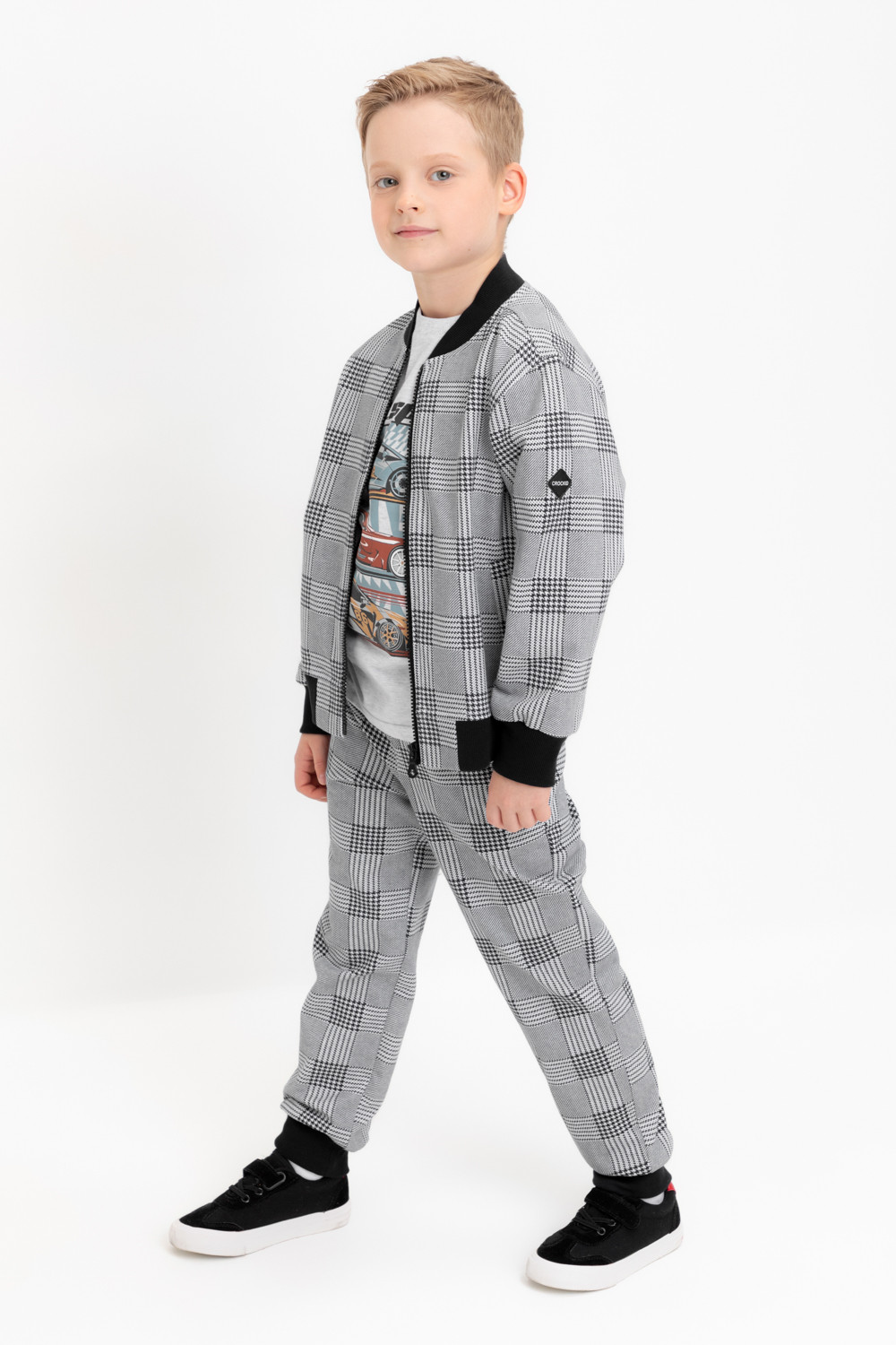 Брюки для мальчика из высококачественного трикотажного полотна футер петля. Пояс на резинке регулируется по ширине с помощью шнурка. По бокам два удобных кармана. Внизу эластичные манжеты.