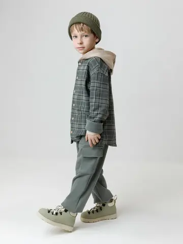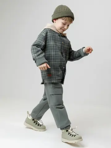 Брюки для мальчика из мягкого петельчатого футера трёхнитки. В составе 80% натурального хлопка и 20% полиэстера, при этом полиэстер ввязан внутрь по особой технологии и не соприкасается с кожей. Модель с эластичным поясом на резинке и утягивающим шнурком для регулировки по талии. По бокам четыре кармана. Низ на манжетах. Изделие сохраняет цвет и форму после многократных стирок. Все трикотажные полотна производятся в соответствии с нормами швейцарского сертификата ЭкоТекс.