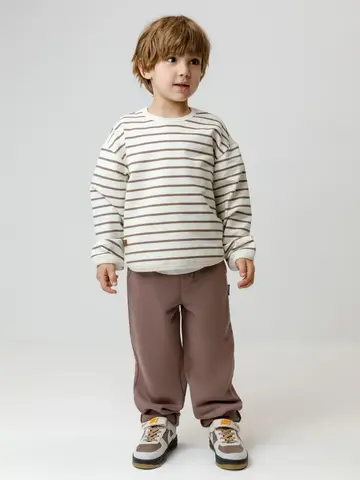 Брюки для мальчика из мягкого петельчатого футера трёхнитки. В составе 80% натурального хлопка и 20% полиэстера, при этом полиэстер ввязан внутрь по особой технологии и не соприкасается с кожей. Модель с эластичным поясом на резинке и утягивающим шнурком для регулировки по талии. По бокам два кармана. Изделие сохраняет цвет и форму после многократных стирок. Все трикотажные полотна производятся в соответствии с нормами швейцарского сертификата ЭкоТекс.