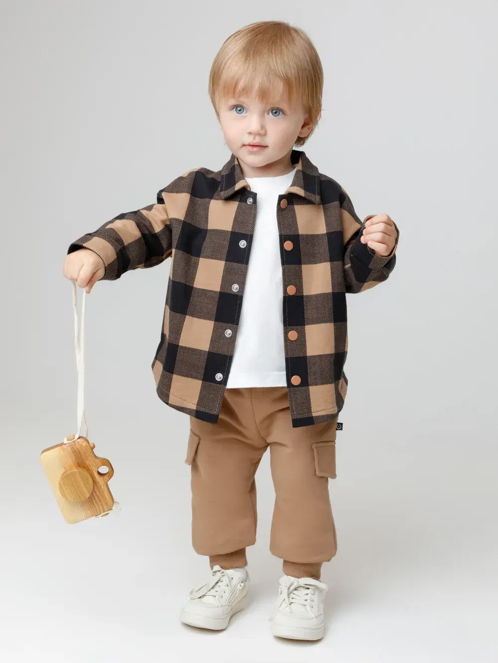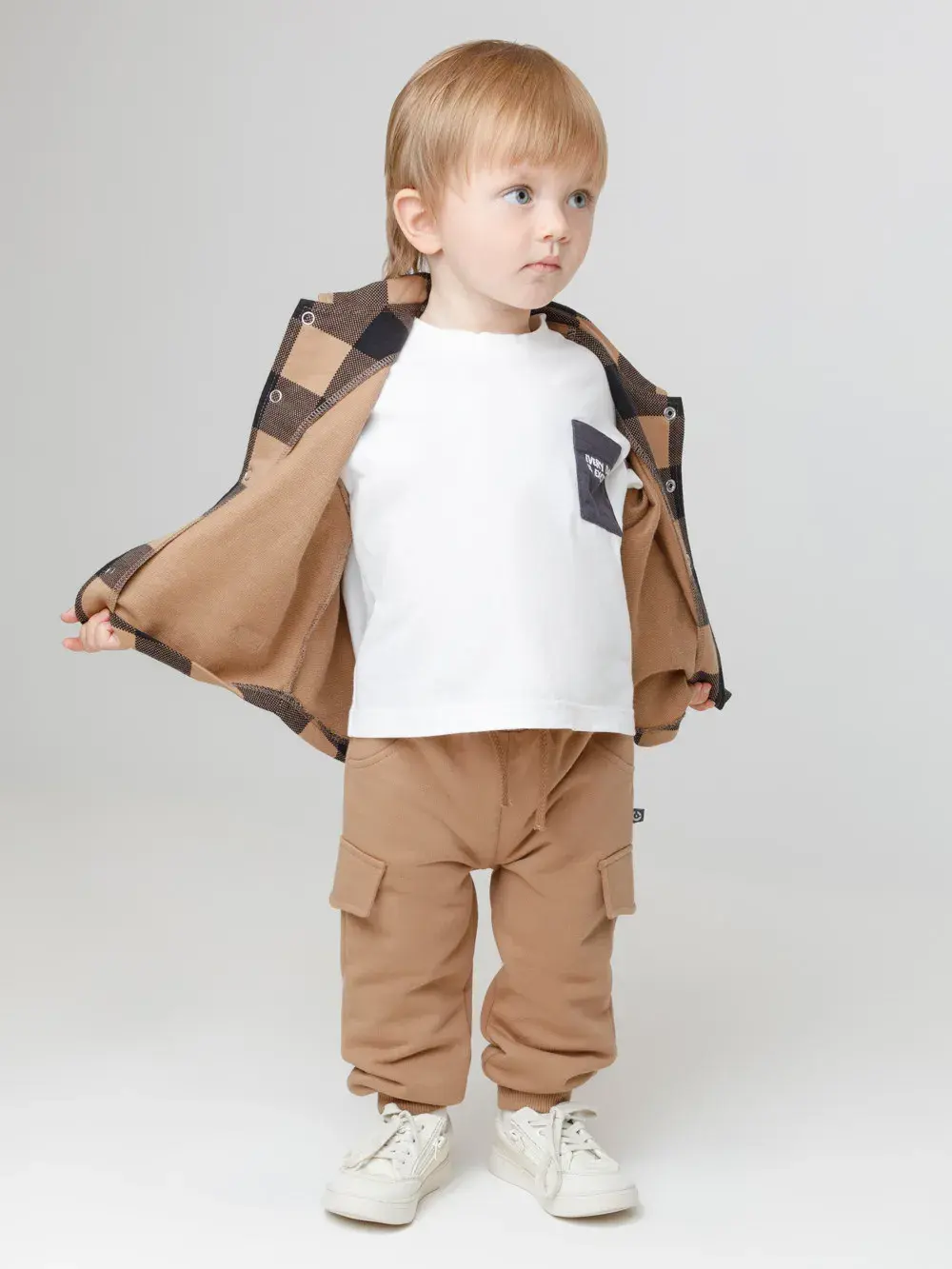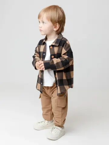 Брюки для мальчика из мягкого петельчатого футера трёхнитки. В составе 80% натурального хлопка и 20% полиэстера, при этом полиэстер ввязан внутрь по особой технологии и не соприкасается с кожей. Модель с эластичным поясом на резинке и утягивающим шнурком для регулировки по талии. По бокам два накладных клапана без карманов. Низ на манжетах. Изделие сохраняет цвет и форму после многократных стирок. Все трикотажные полотна производятся в соответствии с нормами швейцарского сертификата ЭкоТекс.