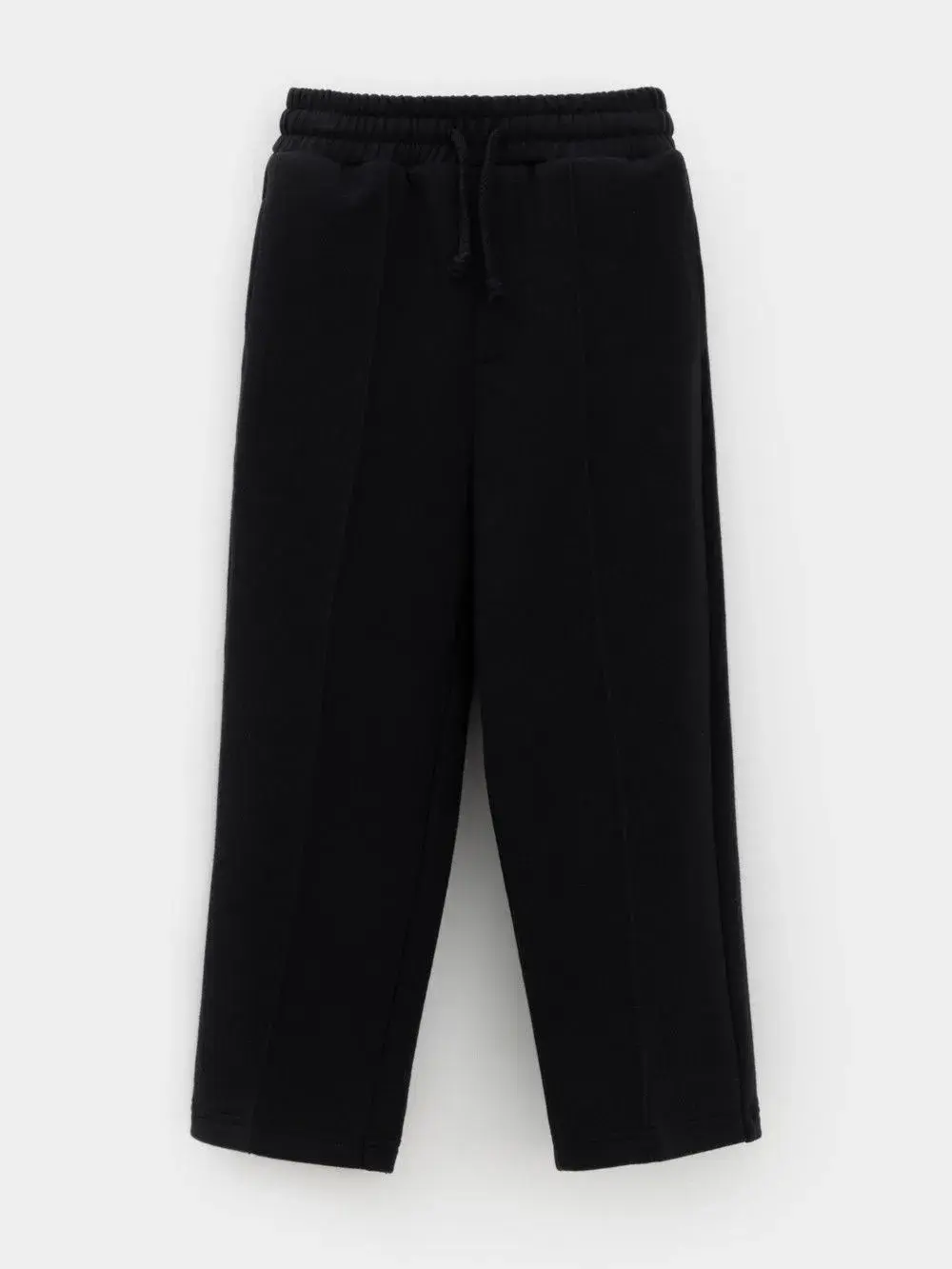 Брюки для мальчика из мягкого петельчатого футера трёхнитки, произведённого из высококачественного натурального хлопка. Модель с эластичным поясом на резинке и утягивающим шнурком для регулировки по талии. По бокам два удобных кармана. Изделие сохраняет цвет и форму после многократных стирок. Все трикотажные полотна производятся в соответствии с нормами швейцарского сертификата ЭкоТекс.