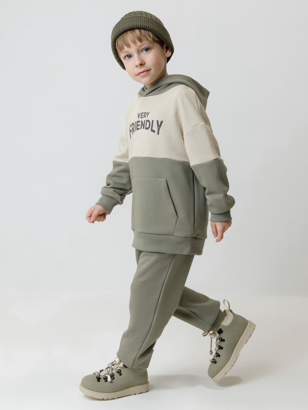 Брюки для мальчика из мягкого петельчатого футера трёхнитки. Модель с эластичным поясом на резинке регулируется по ширине с помощью шнурка. По бокам два удобных кармана. Низ на манжетах. Изделие сохраняет цвет и форму после многократных стирок. Все трикотажные полотна производятся в соответствии с нормами швейцарского сертификата ЭкоТекс.