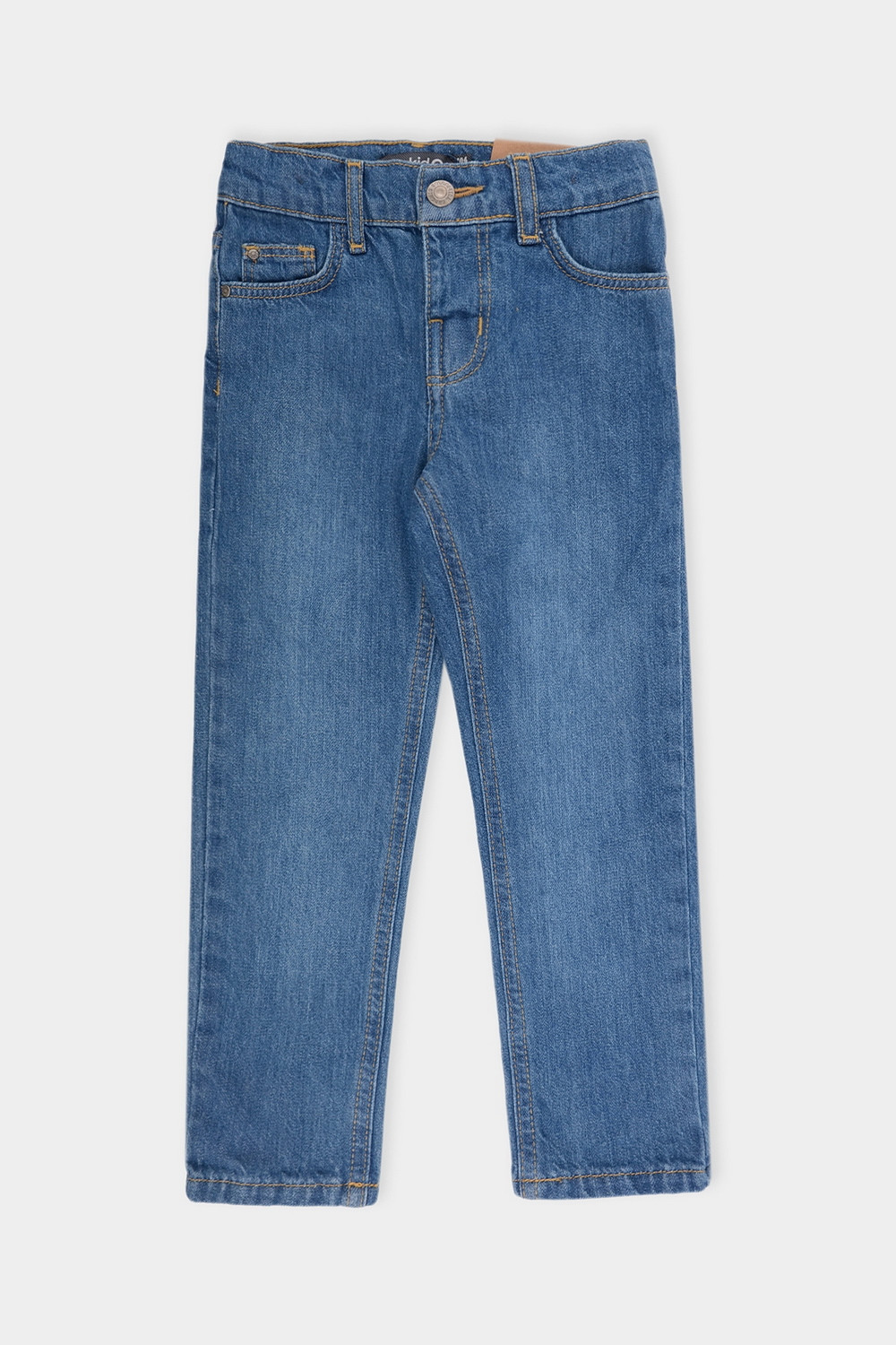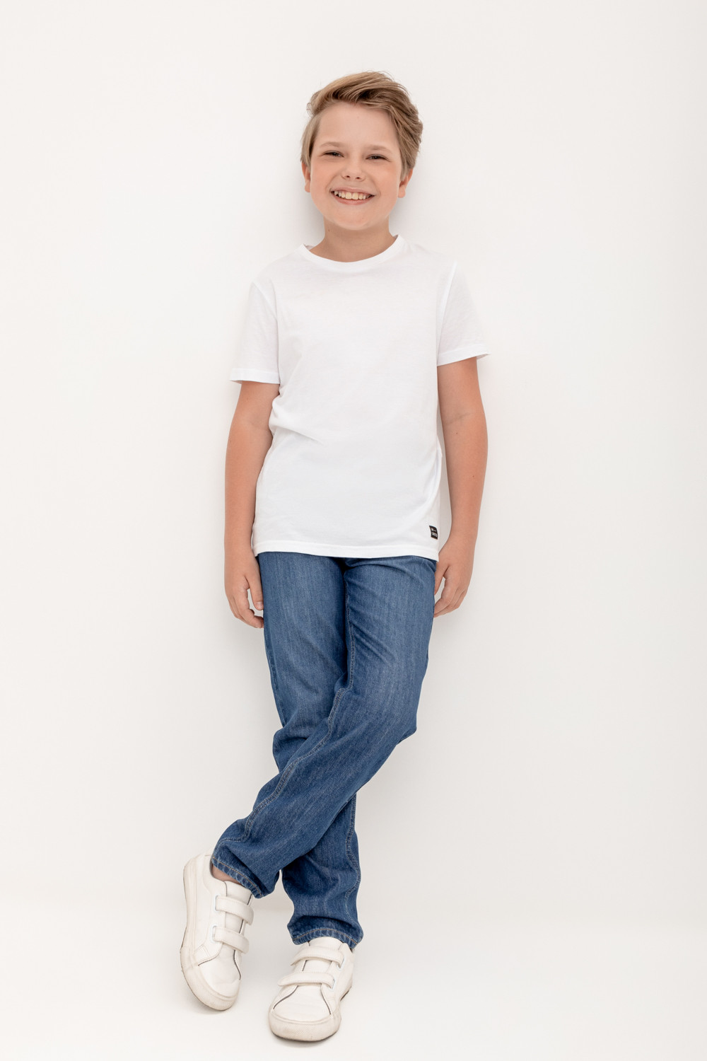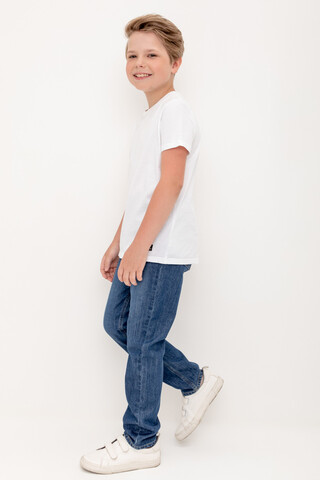Классические прямые джинсы с потертостями. Застёгиваются на молнию в размерах 110-152. Застежка на крючок без молнии в размере 104. Внутренняя эластичная утяжка по талии. Предусмотрены шлёвки, в которые можно вставить ремень. Впереди и сзади карманы.