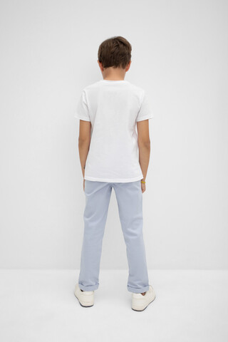 Брюки чинос для мальчика из высококачественного хлопка. Пояс застегивается на пуговицу и регулируется по ширине с помощью эластичной резинки с изнаночной стороны. По бокам два удобных кармана. По низу изделия подвороты с закрепками.