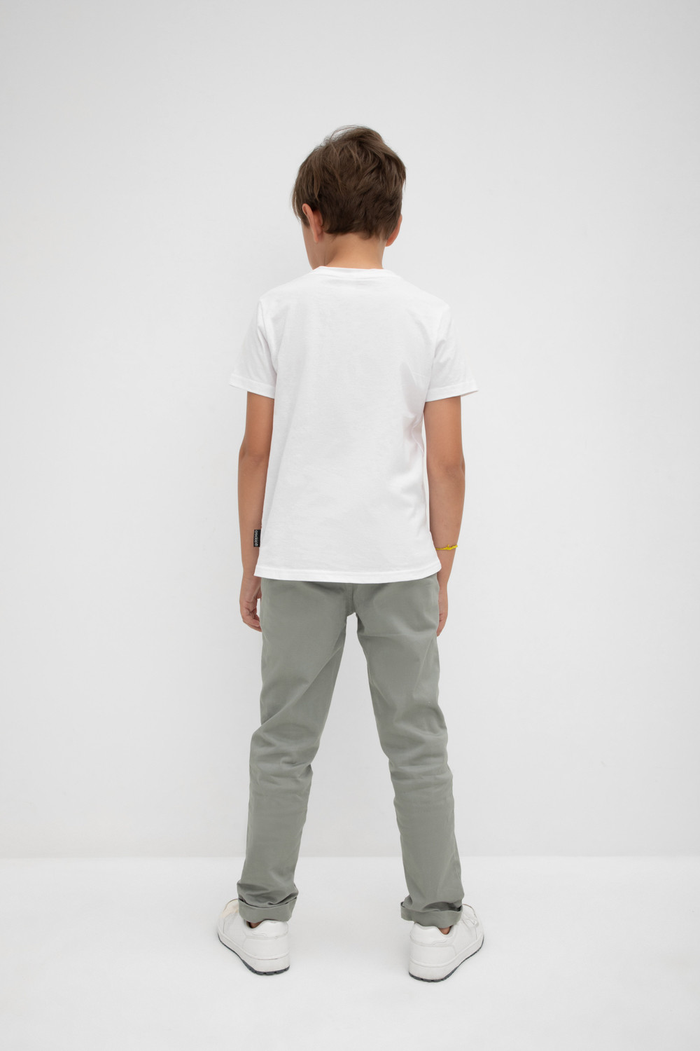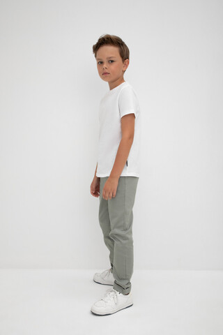 Брюки чинос для мальчика из высококачественного хлопка. Пояс застегивается на пуговицу и регулируется по ширине с помощью эластичной резинки с изнаночной стороны. По бокам два удобных кармана. По низу изделия подвороты с закрепками.