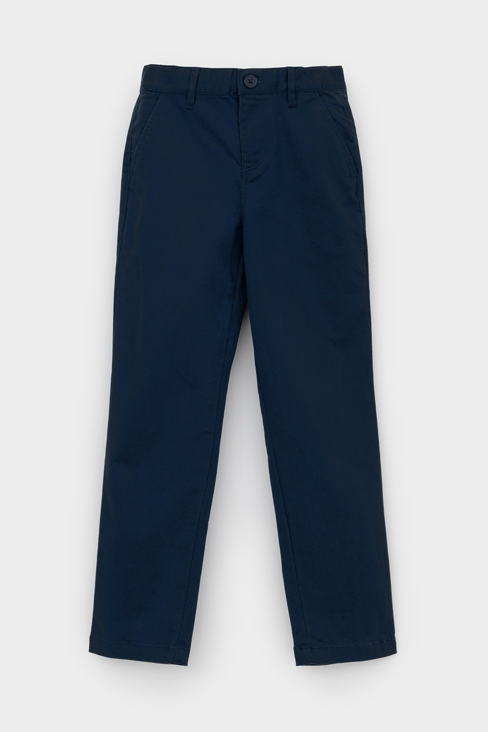 Брюки чинос для мальчика из высококачественного хлопка. Пояс застегивается на пуговицу и регулируется по ширине с помощью эластичной резинки с изнаночной стороны. По бокам два удобных кармана. По низу изделия подвороты с закрепками.
