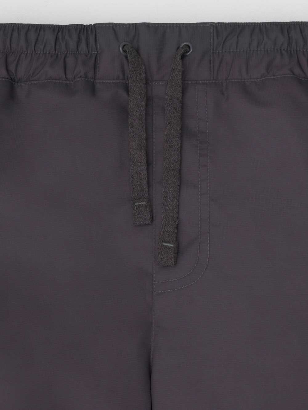 Ветровочные брюки из мембранной ткани с дополнительной тефлоновой обработкой. Данный вид обработки предохраняет изделие от загрязнения и лучше отводит влагу. Подклад из флиса, 100% полиэстер. Эластичный пояс утягивается при помощи шнурка. Ширина низа регулируется утяжкой со стопперами. Во всех изделиях верхнего ассортимента для безопасности ребенка предусмотрены светоотражающие элементы.