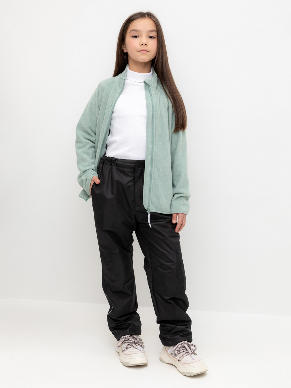Ветровочные брюки из мембранной ткани с дополнительной тефлоновой обработкой. Данный вид обработки предохраняет изделие от загрязнения и лучше отводит влагу. Подклад из 100% хлопка. Ширина пояса регулируется при помощи эластичной резинки и пуговицы. Ширина низа регулируется утяжкой со стопперами. Во всех изделиях верхнего ассортимента для безопасности ребенка предусмотрены светоотражающие элементы.