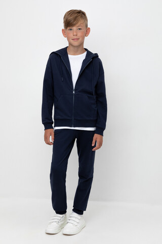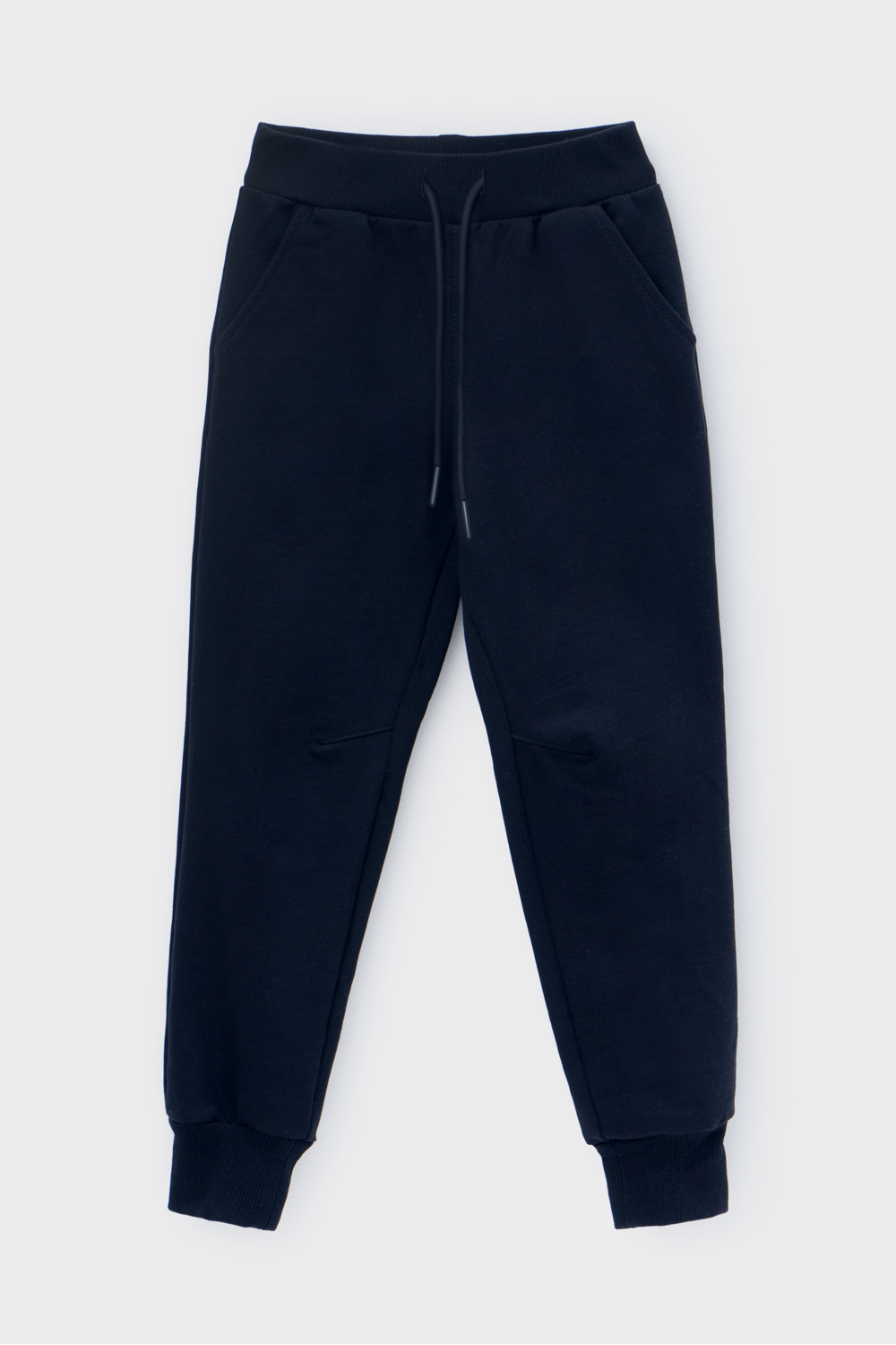 Трикотажные брюки из петельчатого футера. Эластичный пояс на резинке регулируется по ширине с помощью шнурка, по бокам два удобных кармана, внизу эластичные манжеты.