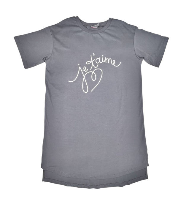 Сорочка женская из мягкого трикотажа с коротким рукавом. Горловина круглая, из рибаны. На полочке выполнена шелкография в виде надписи - люблю тебя.Спинка немного длинне полочки.