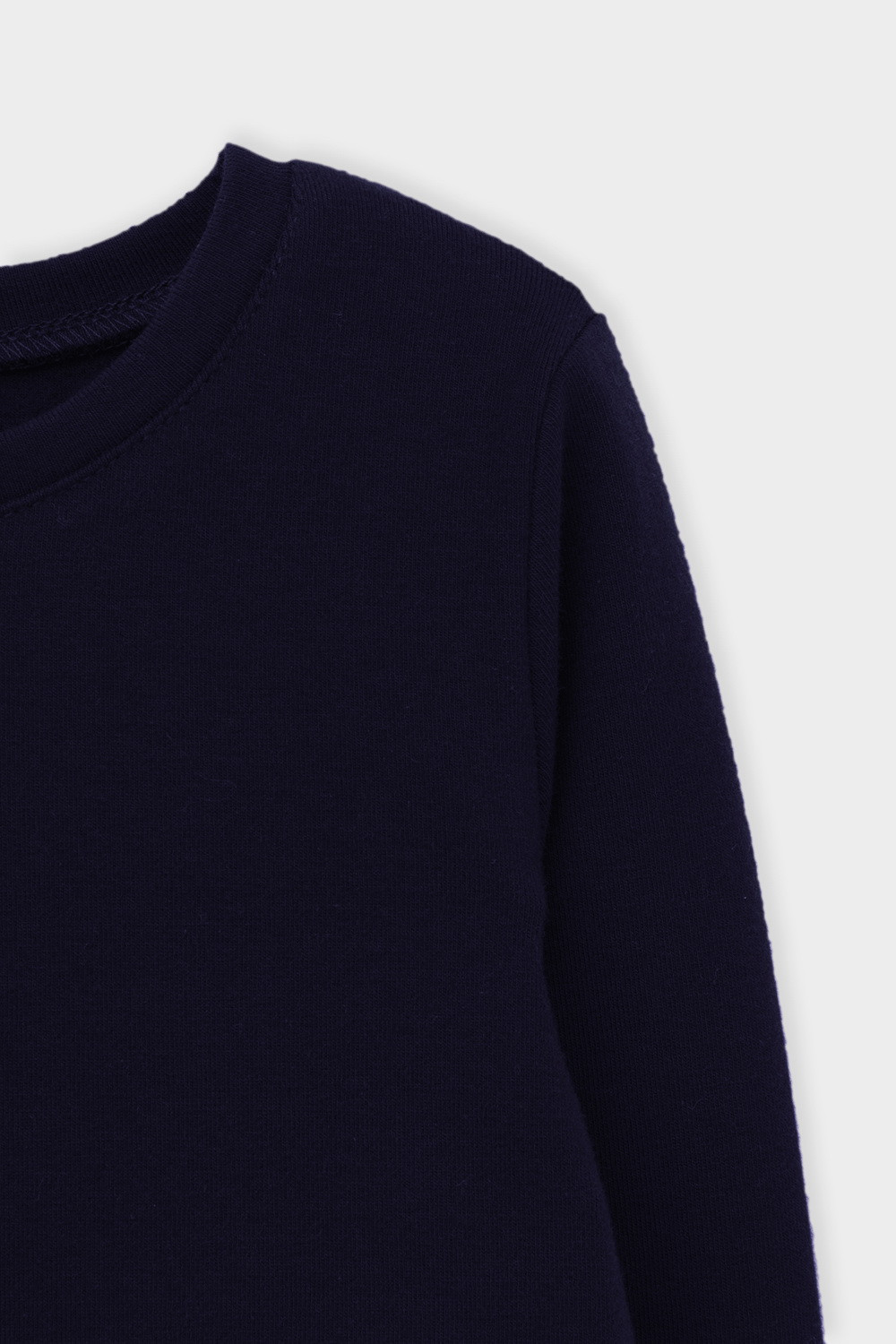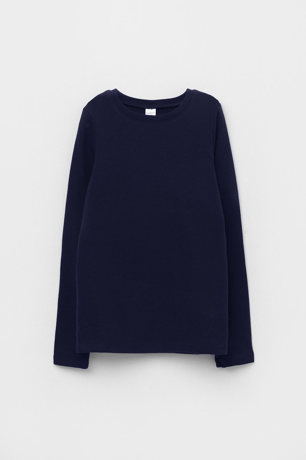Однотонный джемпер с длинными рукавами. Сшит из высококачественной эластичной рибаны с начёсом. Эластан в составе позволяет изделию быть более эластичным и дольше сохранять опрятный внешний вид. Обтачка горловины выполнена из основного материала.