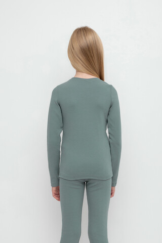 Однотонный джемпер с длинными рукавами. Сшит из высококачественной эластичной рибаны с начёсом. Эластан в составе позволяет изделию быть более эластичным и дольше сохранять опрятный внешний вид. Обтачка горловины выполнена из основного материала.
