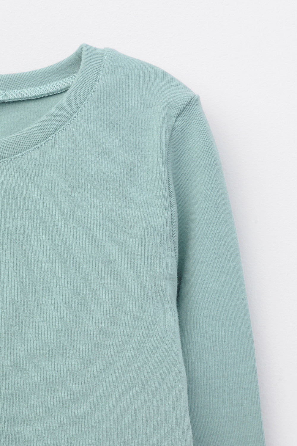 Однотонный джемпер с длинными рукавами. Сшит из высококачественной эластичной рибаны с начёсом. Эластан в составе позволяет изделию быть более эластичным и дольше сохранять опрятный внешний вид. Обтачка горловины выполнена из основного материала.