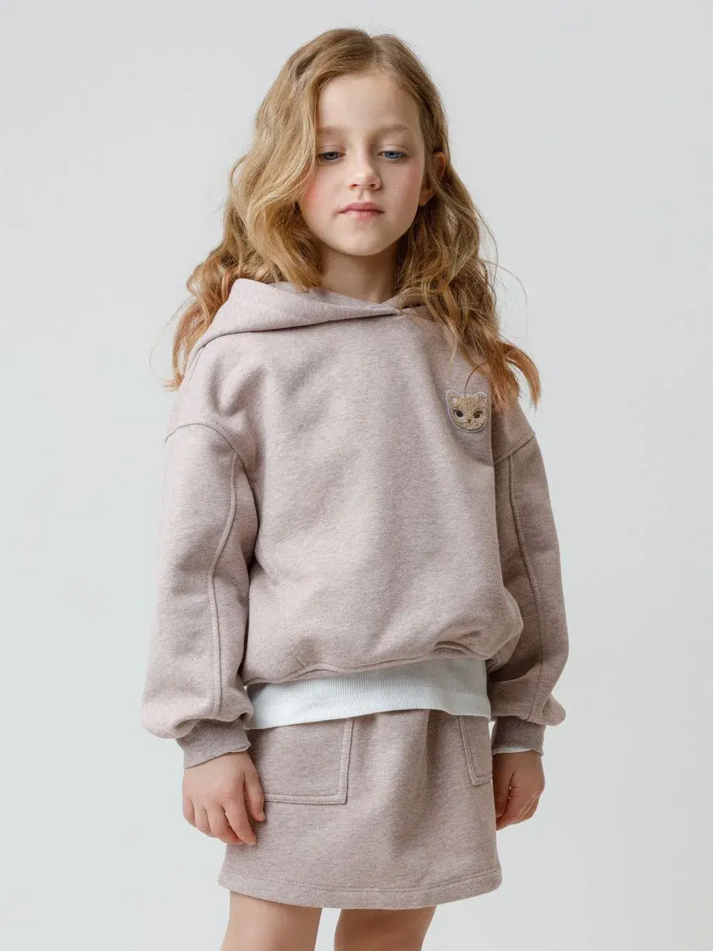 Худи с капюшоном для девочки из мягкого петельчатого футера трёхнитки. Модель оверсайз. Пояс и манжеты выполнены из эластичного трикотажа. Худи сохраняет форму и стойкий цвет после многочисленных стирок и идеально подходит на каждый день. Оригинальный принт выполнен из стойких текстильных гипоаллергенных красителей. Все трикотажные полотна производятся в соответствии с нормами швейцарского сертификата ЭкоТекс.