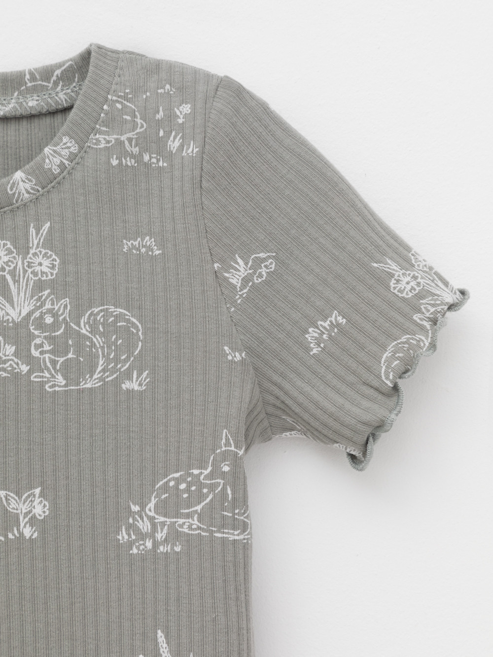 Футболка в рубчик для девочки. Для удобства одевания имеется застёжка на кнопки на плече. Оригинальный рисунок выполнен из стойких текстильных гипоаллергенных красителей. Изделие сохраняет цвет и форму после многократных стирок. Все трикотажные полотна производятся в соответствии с нормами швейцарского сертификата ЭкоТекс.