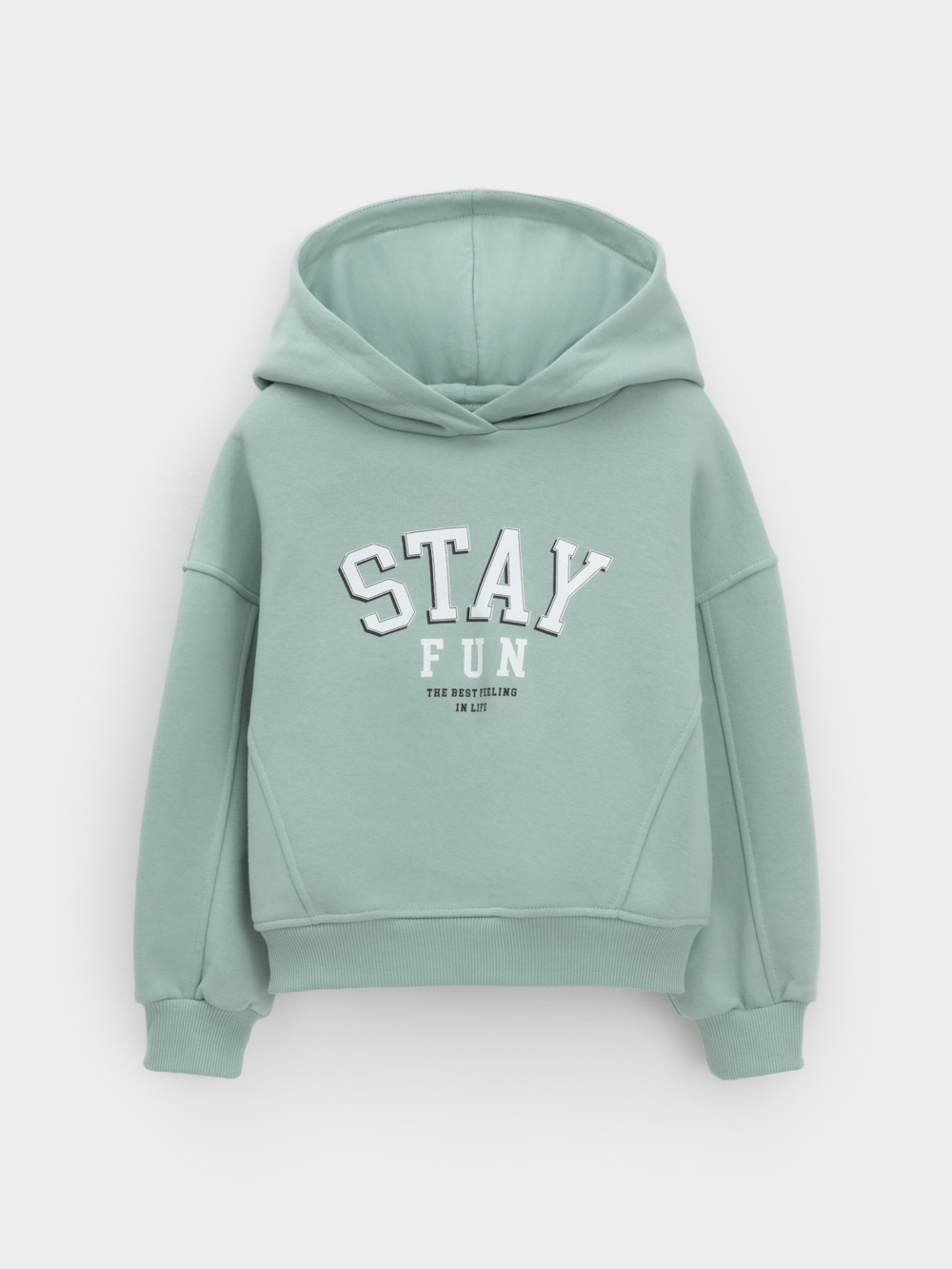Худи с капюшоном для девочки из тёплого футера с начёсом. Модель оверсайз. Пояс и манжеты выполнены из мягкого эластичного трикотажа. Худи сохраняет форму и стойкий цвет после многочисленных стирок и идеально подходит на каждый день. Оригинальный принт выполнен из стойких текстильных гипоаллергенных красителей. Все трикотажные полотна производятся в соответствии с нормами швейцарского сертификата ЭкоТекс.