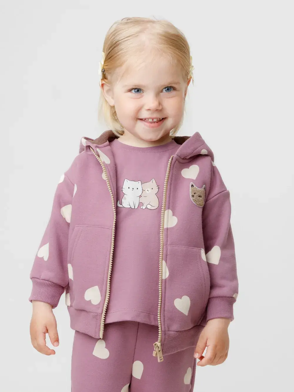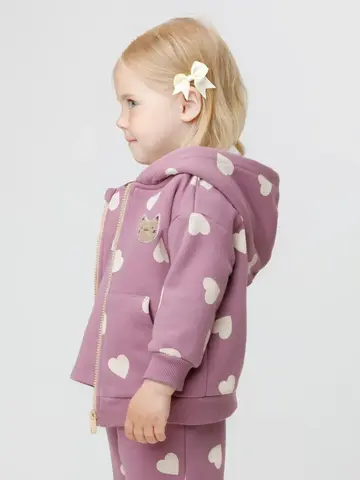 Тёплая толстовка для девочки со спущенными плечами. Изготовлена из высококачественного футера с начёсом. Застёгивается на молнию. В капюшоне мягкий подклад из флиса с длинным ворсом. Манжеты и пояс выполнены из эластичного полотна. Спереди удобный вместительный карман-кенгуру. Изделие сохраняет цвет и форму после многократных стирок. Все трикотажные полотна производятся в соответствии с нормами швейцарского сертификата ЭкоТекс.