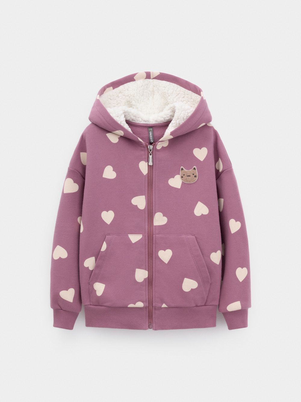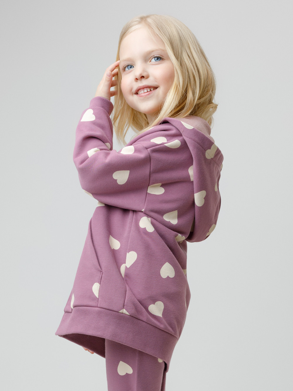 Толстовка для девочки со спущенными плечами. Изготовлена из высококачественного петельчатого футера трёхнитки. Застёгивается на молнию. В капюшоне мягкий подклад из флиса с длинным ворсом. Манжеты и пояс выполнены из эластичного полотна. Спереди удобный вместительный карман-кенгуру. Изделие сохраняет цвет и форму после многократных стирок. Все трикотажные полотна производятся в соответствии с нормами швейцарского сертификата ЭкоТекс.