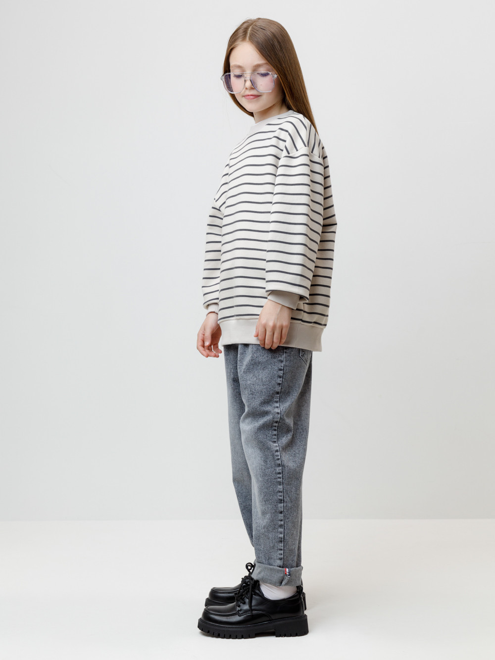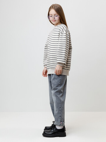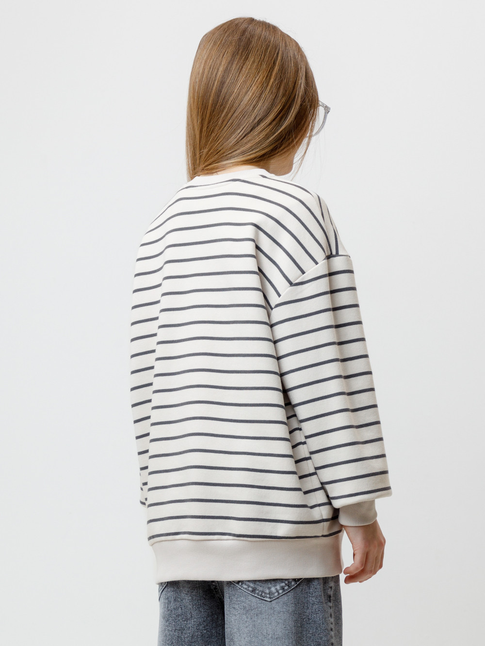 Свитшот в полоску для девочки из гладкого петельчатого футера трёхнитки. В составе 80% натурального хлопка и 20% полиэстера, при этом полиэстер ввязан внутрь по особой технологии и не соприкасается с кожей. Пояс и манжеты выполнены из мягкого эластичного трикотажа. Изделие сохраняет форму и стойкий цвет после многочисленных стирок и идеально подходит на каждый день. Оригинальный принт выполнен из стойких текстильных гипоаллергенных красителей. Все трикотажные полотна производятся в соответствии с нормами швейцарского сертификата ЭкоТекс.