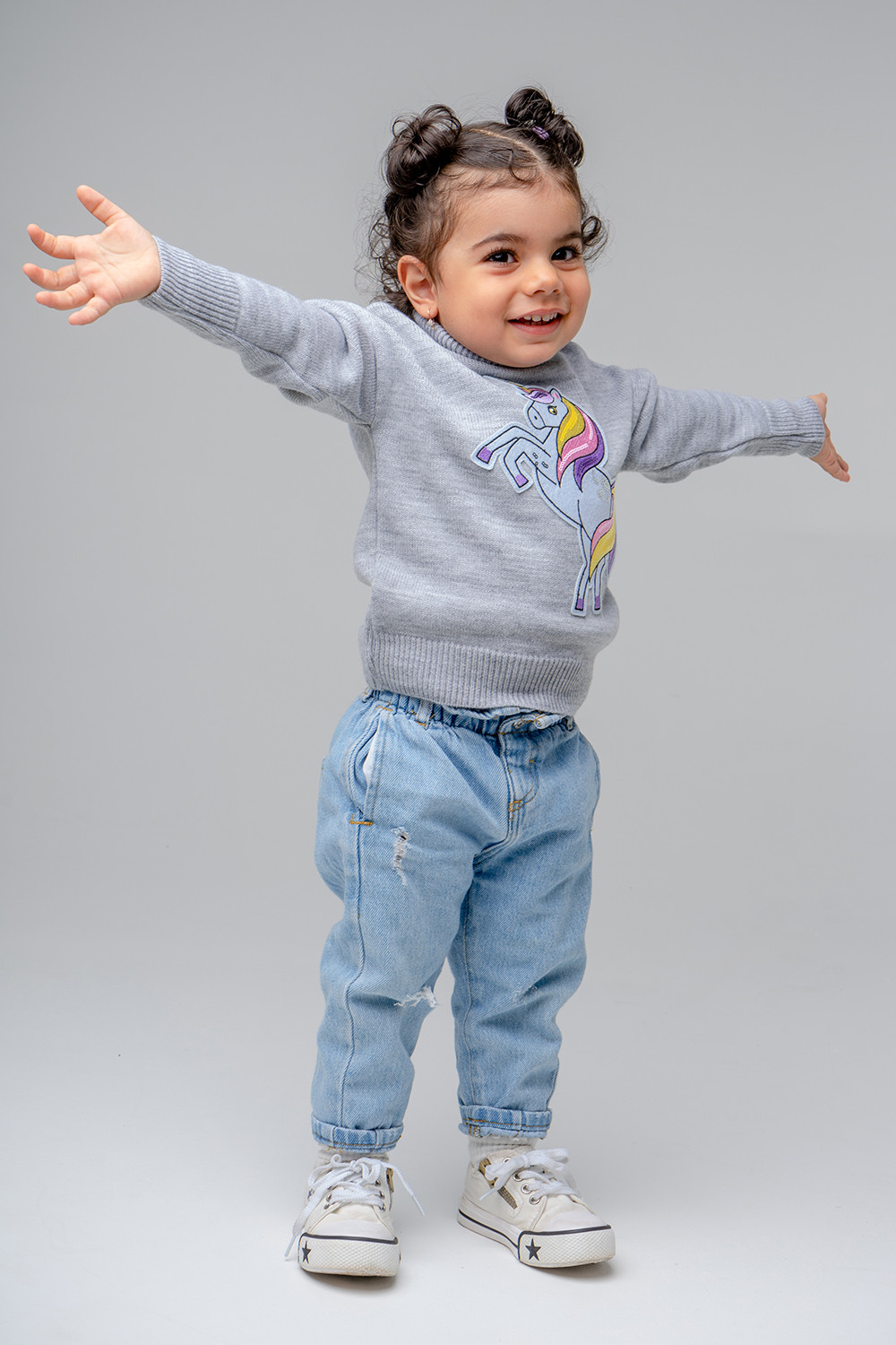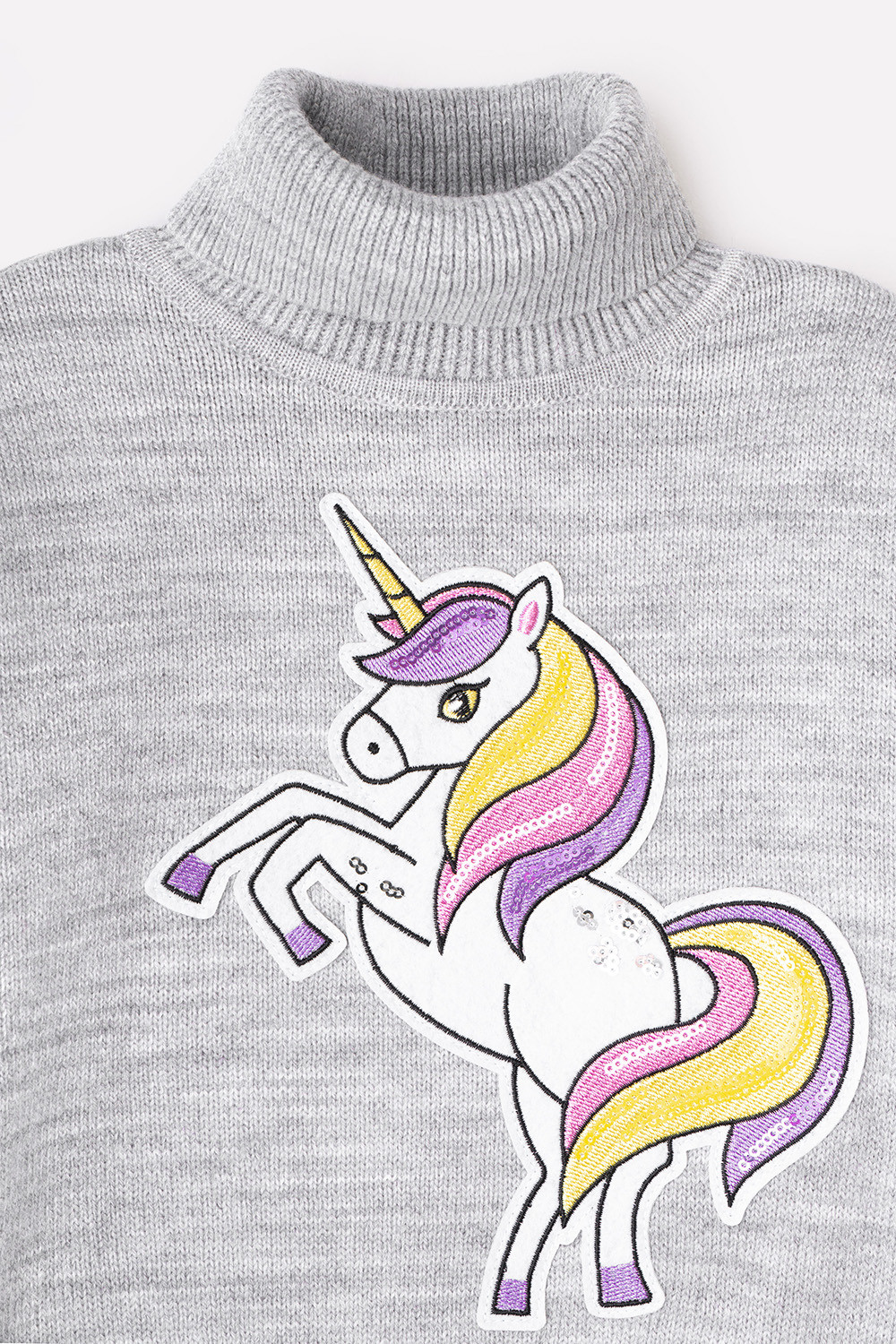 Теплый вязанный джемпер из полушерстяной пряжи в состав которой входит шерсть австралийского мериноса. У изделия спущенные плечи, высокий эластичный воротник. Манжеты и низ изделия связаны ластиком.