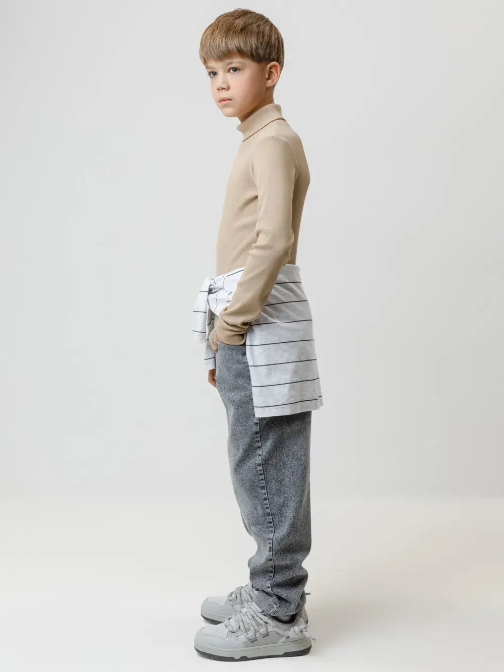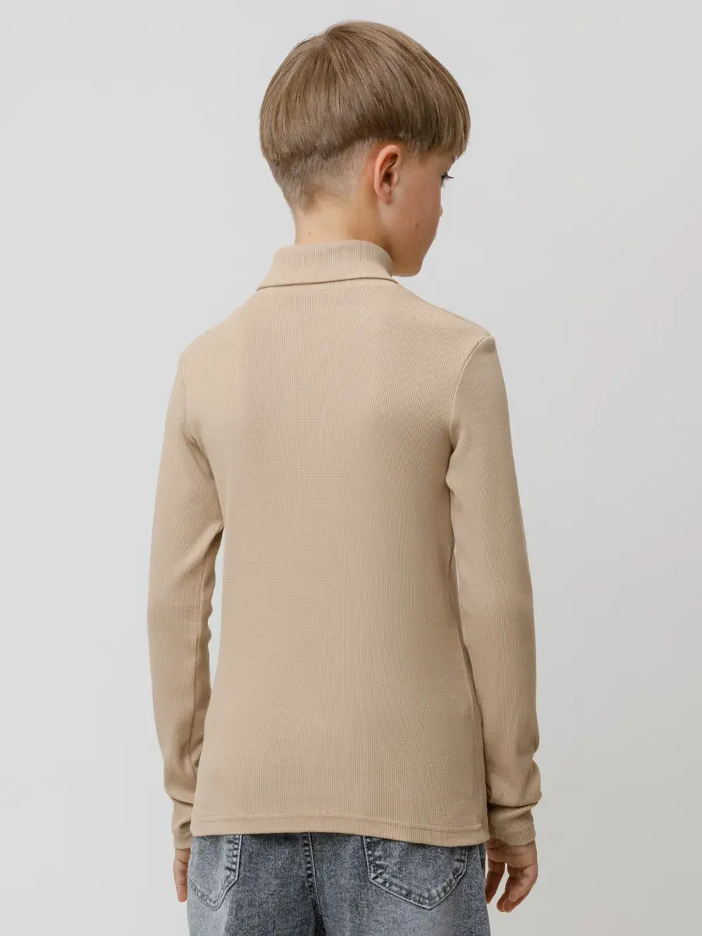 Однотонная водолазка из эластичного трикотажа в рубчик для мальчика. Изделие сохраняет форму и стойкий цвет после многочисленных стирок и идеально подходит на каждый день. Все трикотажные полотна производятся в соответствии с нормами швейцарского сертификата ЭкоТекс.