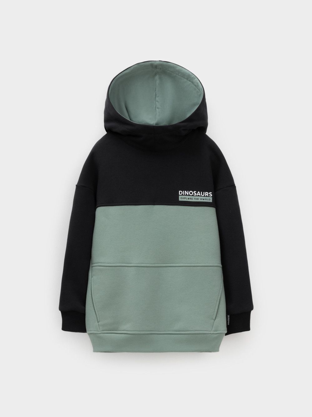 Худи с капюшоном для мальчика из тёплого футера с начёсом. Пояс и манжеты выполнены из мягкого эластичного трикотажа. Спереди карманы. Худи сохраняет форму и стойкий цвет после многочисленных стирок и идеально подходит на каждый день. Оригинальный принт выполнен из стойких текстильных гипоаллергенных красителей. Все трикотажные полотна производятся в соответствии с нормами швейцарского сертификата ЭкоТекс.